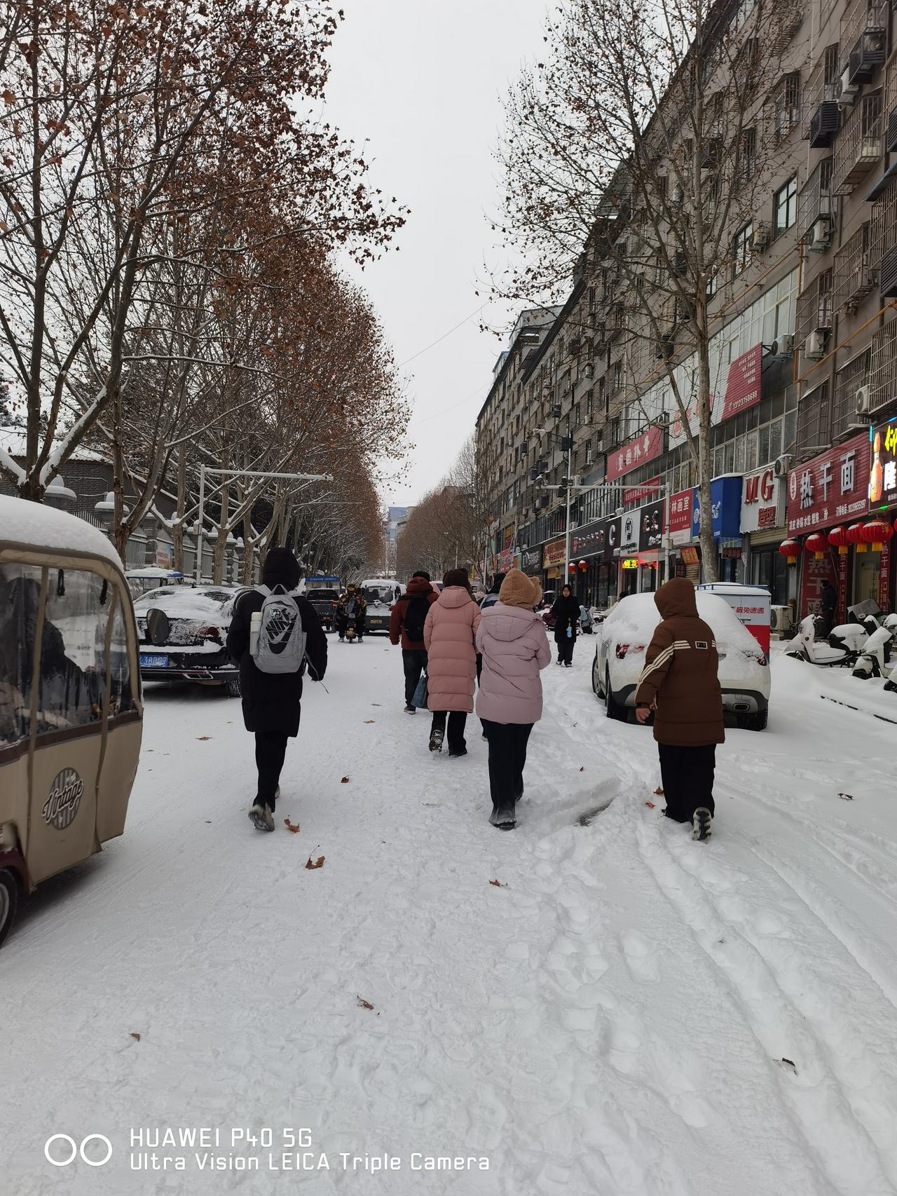 暴雪过后,道路结冰,步行送读高中女儿去上学,途中步行的人流越来越多,这种场景已经很多年没有过了! 女儿小时候就不步行了,最初是摩托车,后来又换小轿车,来往均坐车,记忆中和女儿长时间途步是好久好久以前的事了。 今天早晨陪着孩子去学校的还有许多家长,边走着边说笑着,看起来是那么的和谐,没有了叛逆和争吵,或许这一幕会成为这群高中生永远的记忆。下雪路滑滑 雪地暖心一幕