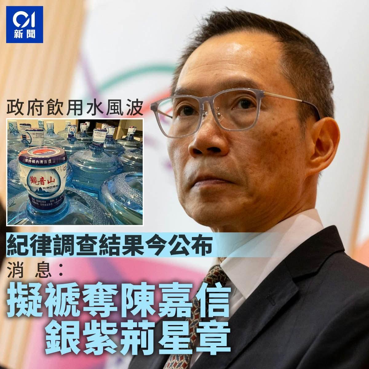 三名物流署人员未达水平 政府撤回前署长陈嘉信颁授银紫荆星章 财经事务及库务局局长许正宇及公务员事务局局长杨何蓓茵今日(1月20日)上午11时会见传媒,公布检讨政府採购机制专责小组报告,以及就採购樽装饮用水事件进行的纪律调查结果。政府撤回向陈嘉信颁授银紫荆星章决定,另惩处三名物流署人员包括首长级人员,包括停发增薪点。 公务员事务局局长杨何蓓茵公布就採购樽装饮用水事件进行的纪律调查结果,经行政署谘询授勋及非官守太平绅士遴选委员会意见后,政府决定撤回向物流署前署长陈嘉信颁授银紫荆星章的决定,并已通知对方。 杨何蓓茵说,由首长级甲一级政务官刘焱所领导的调查组,识别超过20名来自财库局、物流署及食环署人员,要求他们作出陈述,并约见部分人员,发现事件中,有3名物流署人员的表现未能达到与本身职级及经验相称的水平,缺乏应有的警觉性和判断力,以致未能识别明显不妥之处,亦未能把握时机作出跟进及向上级汇报,令部门错过及早识破虚假文书及尽早採取适当行动的时机。 她说现阶段表面证据显示,3人当中的两人,包括1名首长级人员,涉嫌未能及时识别明显不妥之处所揭示的重要性并且上报,政府会展开正式纪律研讯,并按裁决作出惩处,而两人在工作能力上的欠缺,亦会反映在考绩报告内,政府会向未达顶薪点人员停止发放增薪点。 杨何蓓茵又说,处事人员在事件上,未有向上呈报不妥之处,调查组无发现前任物流署署长有疏忽地方,但有关物流署人员的在事件中的表现,未达与他们职级及经验相称水平,反映有关不足之处在署内有普遍性。专责小组报告又显示,部门採购工作有改善空间,要提升触觉以避免政府受损,处理採购应更积极及谨慎。财库局局长已去信物流署前署长,指出事件引起高度关注,对政府声誉造成严重影响。 香港饮用水事件港府撤回前署长陈嘉信颁授银紫荆星章