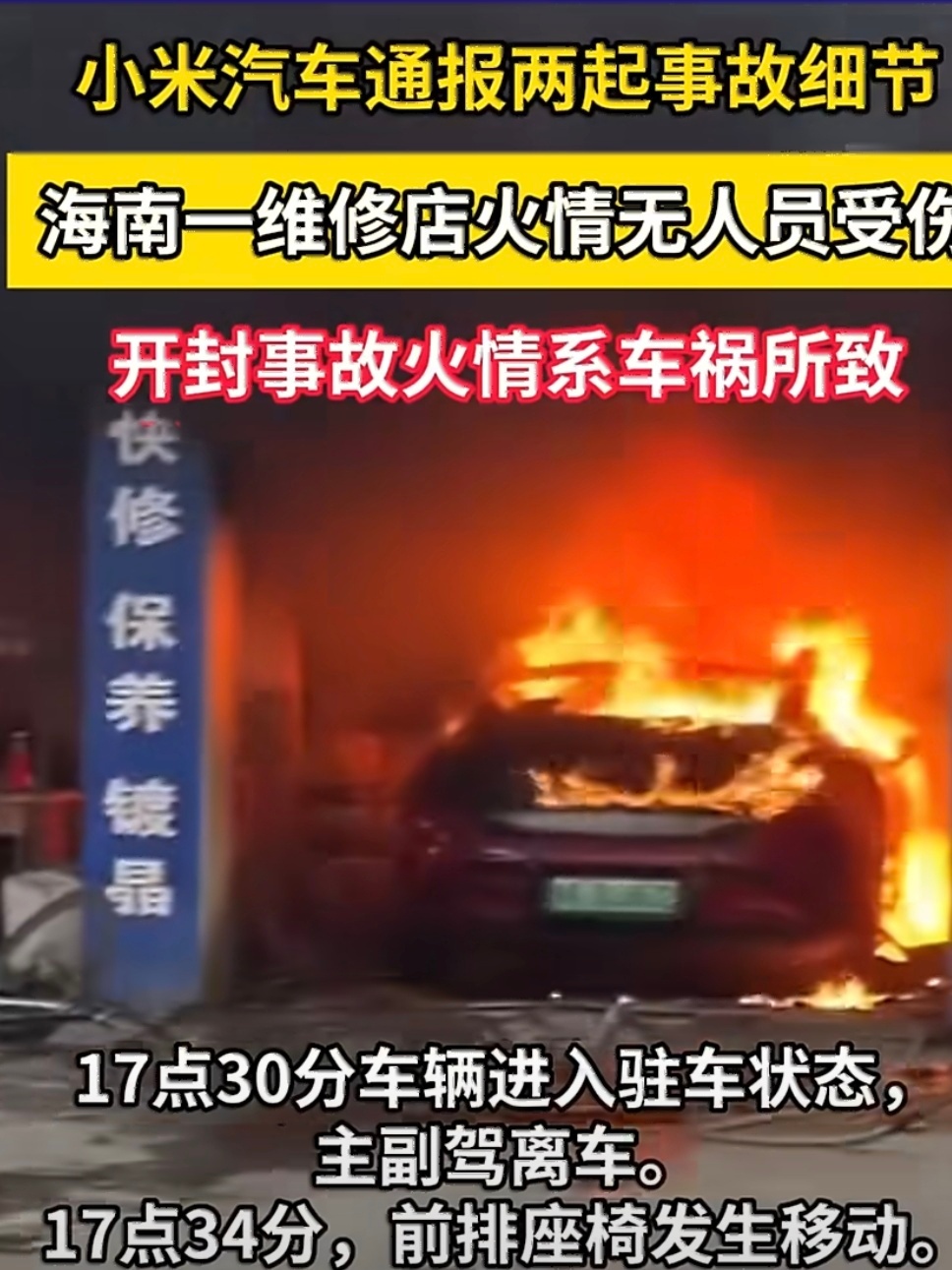 小米现在官方回应事故速度也在加快,海口汽修店“着火”,以及第二个事故我都没刷到就