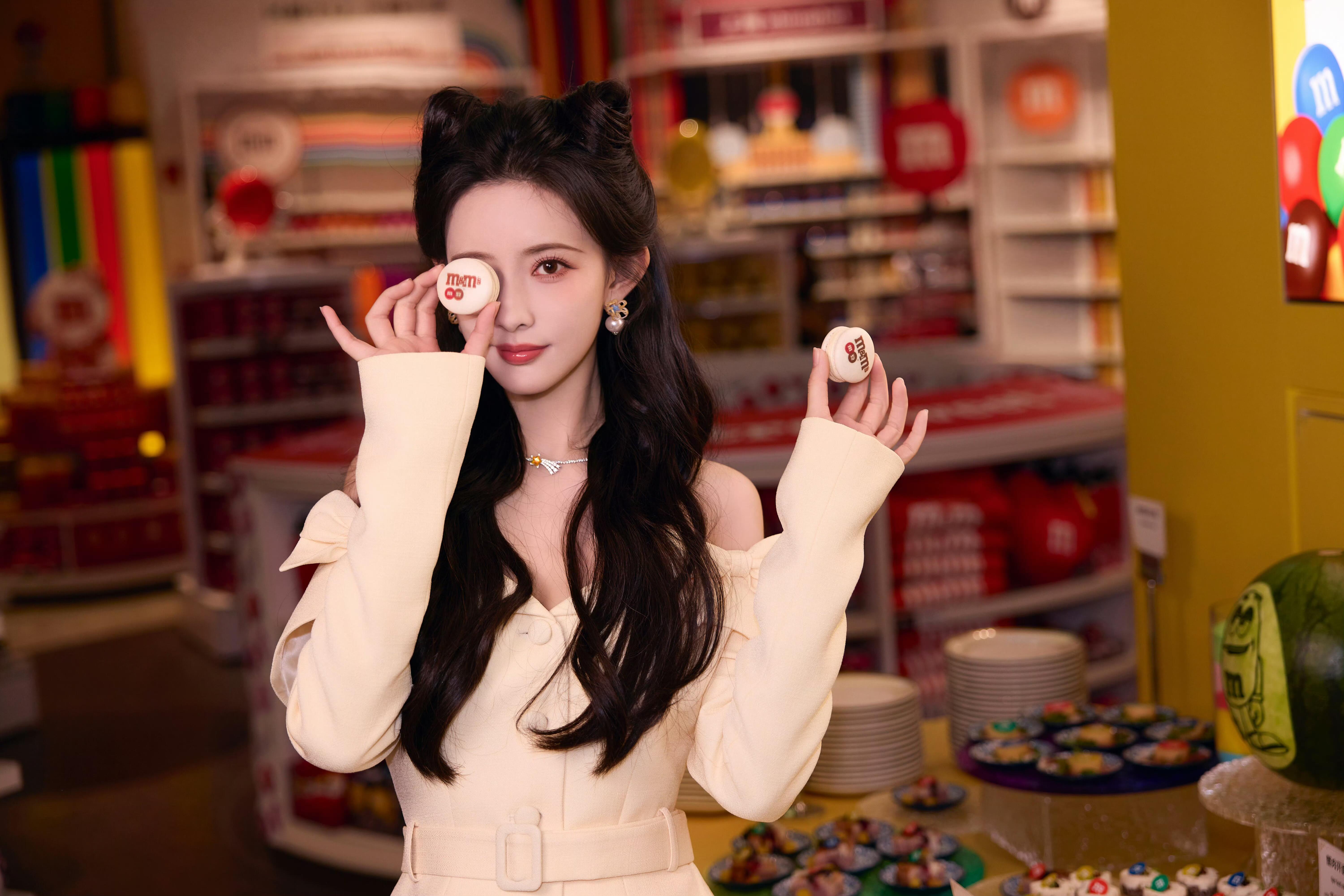 孟子义 孟姐这是什么甜妹下凡现场!米白露肩裙配蝴蝶结袖,在M豆的糖果世界里又甜又灵动,直接美到我心巴上!这波“孟孟豆”的适配度我给满分!孟子义|