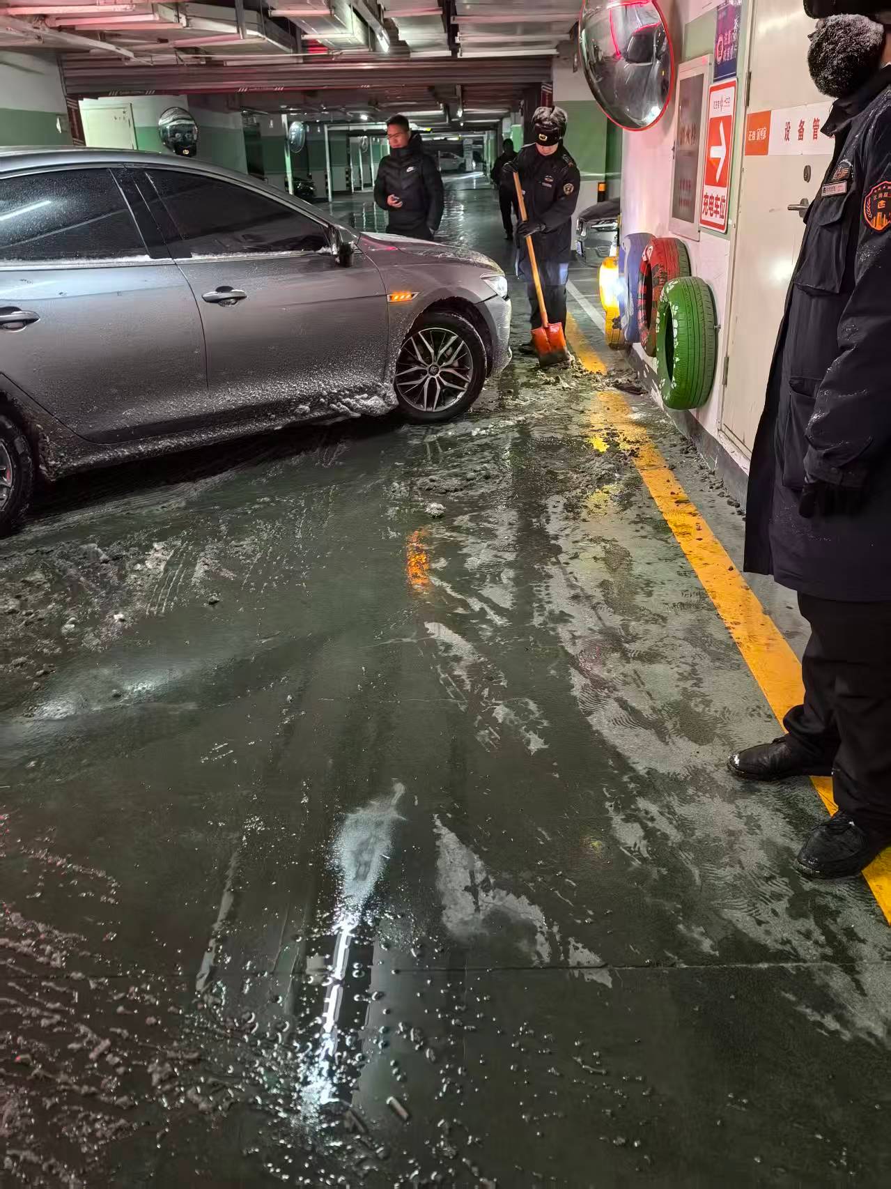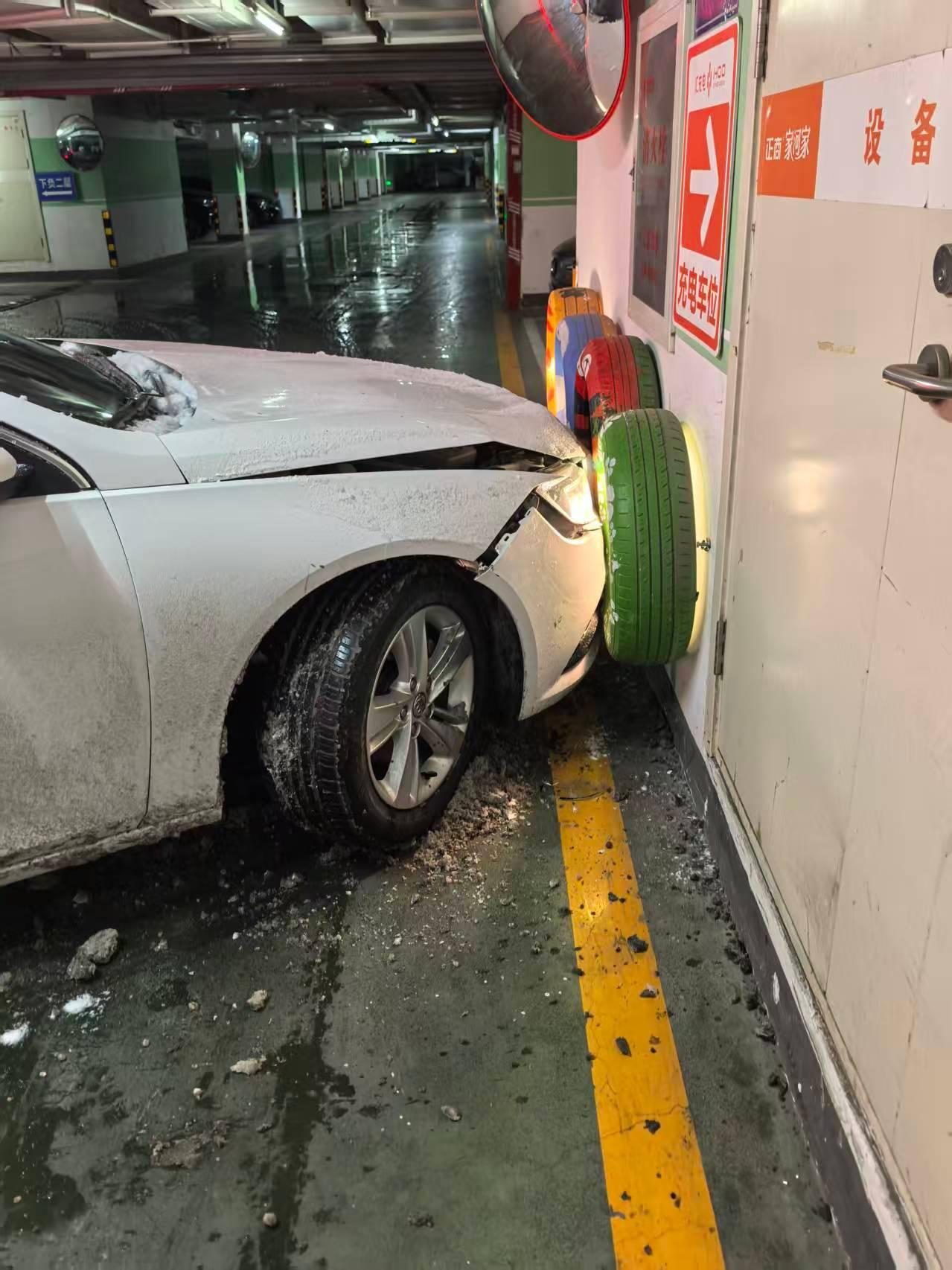 10小时降雪10厘米 雪下嗨了!我们小区地下车库入口也快变成“溜冰场”了!这两天已经有3辆车进地库时刹不住,撞到了负一入口处的墙上!幸好墙上挂了三个轮胎,缓冲了一下!大家下地库时,一定要小心慢行啊!河南还有雪在路上行车安全安全出行