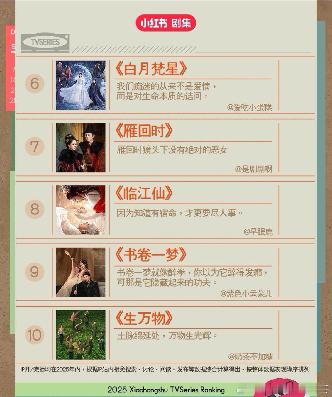 小📕2025年度热门剧集:许我耀眼 、藏海传 、折腰 、国色芳华 、难哄 、白月梵星 、雁回时 、临江仙 、书卷一梦 、生万物
