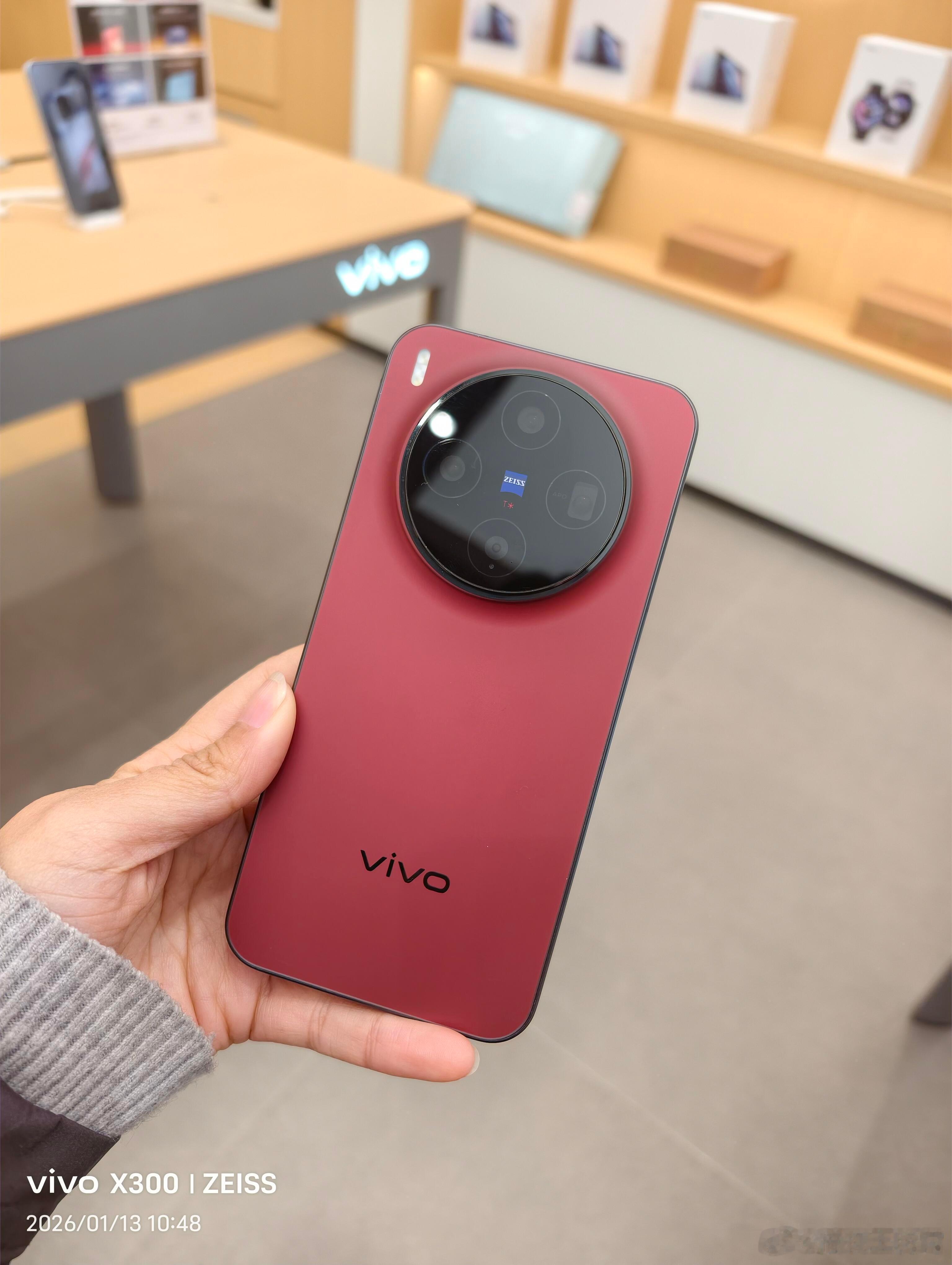 蓝厂针对春节给vivo X300推了款新配色「好运红」,线下门店已经有真机了,看