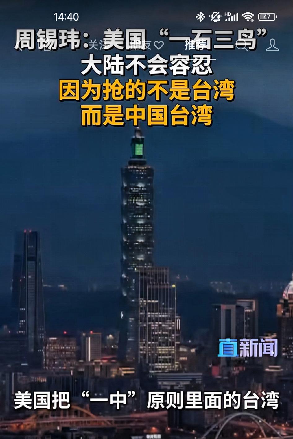 周锡玮:美国“一石三鸟”,中国大陆不会容忍,因为抢得不是台湾,而是中国台湾!