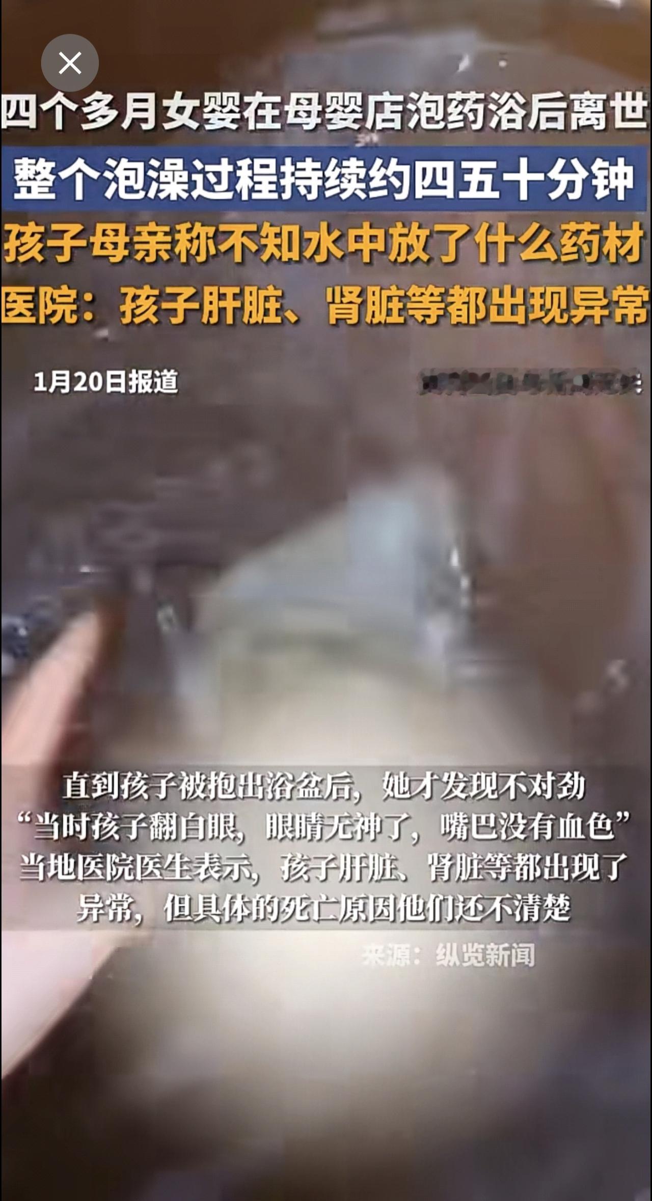 四个多月女婴在母婴店泡药浴后离世,医院:孩子肝脏、肾脏等都出现异常 (来源:荆楚网)