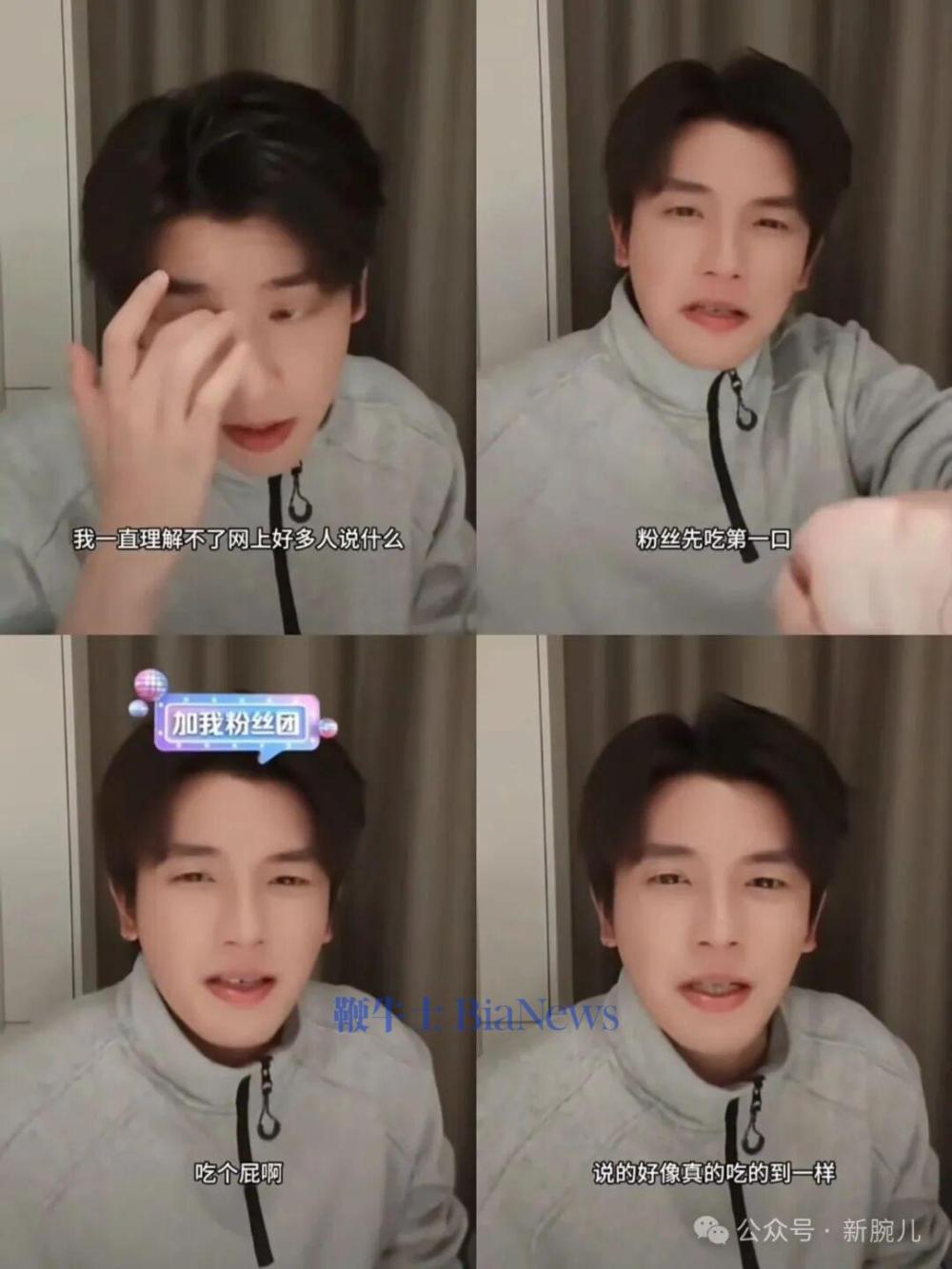 他说他一直不理解很多人拍视频时说“粉丝先吃第一口,吃个屁啊,好谄媚啊”。