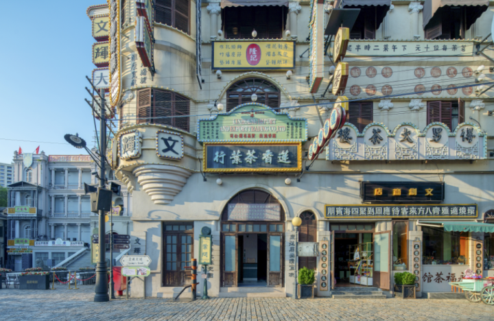 樱花精舍、丁香花、广州街影视主题酒店三大特色街区,内设287间影视主题客房,以《金粉世家》等经典作品命名,复古陈设融入现代智慧,每层走廊陈列影视道具与幕后故事,部分房型带景区主街阳台,尽显“住在电影里”的质感。