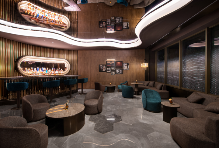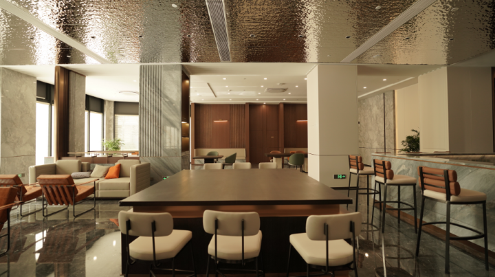 这里有绝佳的精致体验:大堂自带电影艺术感,胶片风曲线吊顶+影视剧照墙超好拍;一楼威士忌酒廊,晚上小酌一杯超惬意;客房全配落地大窗,采光无敌,床垫、莱芬吹风机、智能马桶、定制巴马水、免费手冲咖啡+迷你吧软饮,细节满满;还有24小时健身房、洗衣房、机器人送餐,智能又贴心……