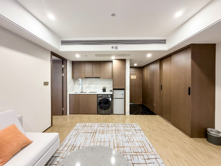 部分房型带洗衣机、电磁炉,长期驻组也能自己做饭,主打一个接地气;智能门禁+24小时安保,隐私感拉满,就算是普通游客,也能花小钱体验一把“横漂日常”;楼下超市餐厅一应俱全,逛吃玩超方便。