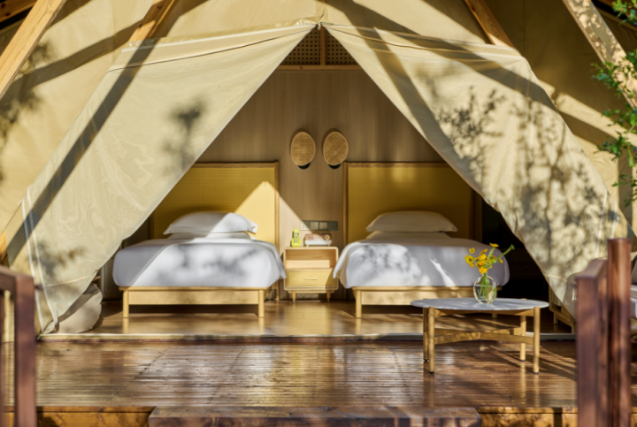 也许,你会说,这是“最不横店”的酒店,那就对了,它要做的,是以帐篷为舟、以山野为卷,带你倾听山谷的声音。