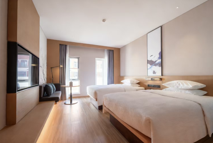 客房里用的是舒达甜梦床垫,智能影音系统,玉龙茶香洗护用品+恒温雨淋花洒,妥妥治愈旅途中的疲惫。全日制餐厅的德式香肠、超香的现烤面包,24小时便利店、随时待命的健身房,商务出差、亲子出游都合适,主打一个高效又舒适。