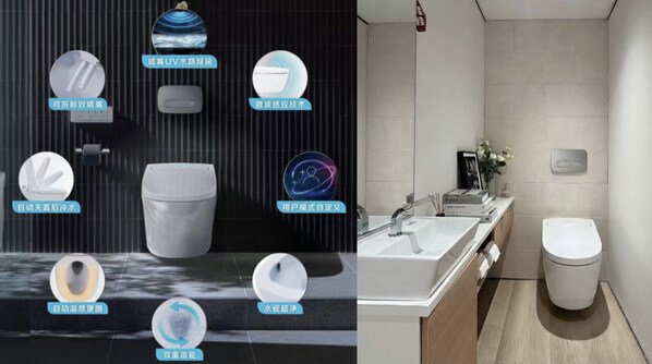 在洁净科技方面,新品首次搭载"喷嘴UV水路除菌"功能。通过内置UVC模块,在座便器出水前对水路进行实时除菌消毒,从源头保障清洗水的洁净度,为用户带来更安心、更卫生的使用体验。