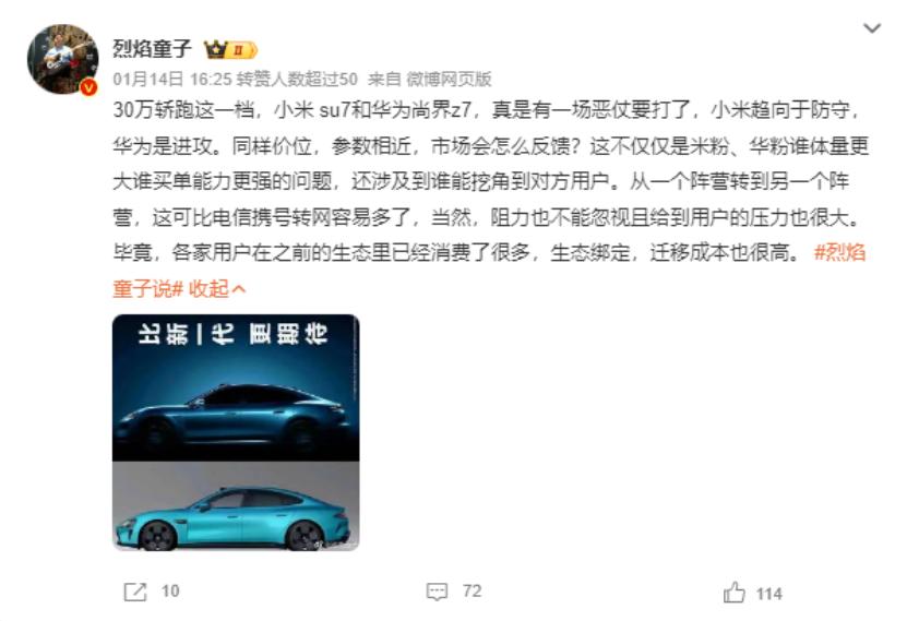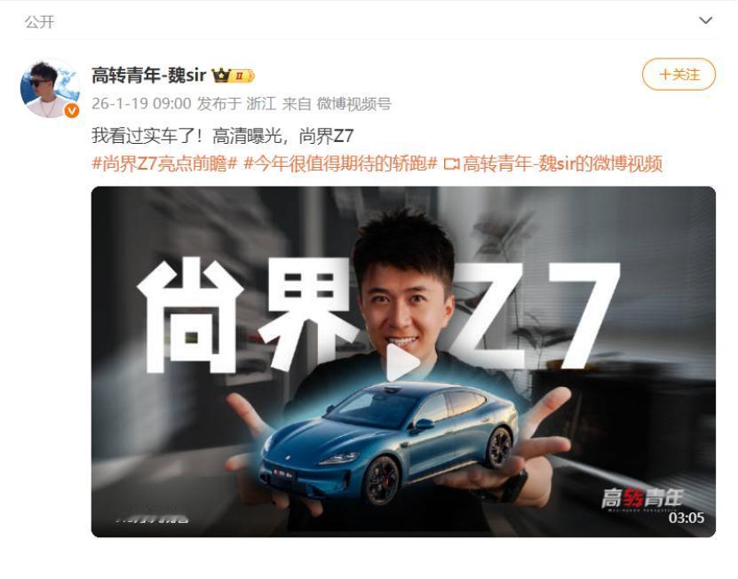 AI齐推实力选手!尚界Z7让轿跑市场选择更精彩 近日多款主流AI软件给出共性反馈,被问及“新一代小米SU7最强对手”时,均指向尚界Z7。这并非非此即彼的竞争,而是两款实力车型让消费者拥有更优选择——小米SU7早已凭借自身优势圈粉无数,尚界Z7则以独特魅力跻身热门。作为鸿蒙智行首款轿跑,它拒绝同质化,以“低趴、宽肩、长车头”的原创美学打造记忆点,星河大灯与钻石贯穿尾灯尽显格调。华为乾崑智驾ADS 4与上汽造车底蕴双强赋能,目测将以25-35万定价覆盖年轻需求。2026年轿跑市场因这些优质车型更具活力,尚界Z7也正以实力助力品牌向上突破。