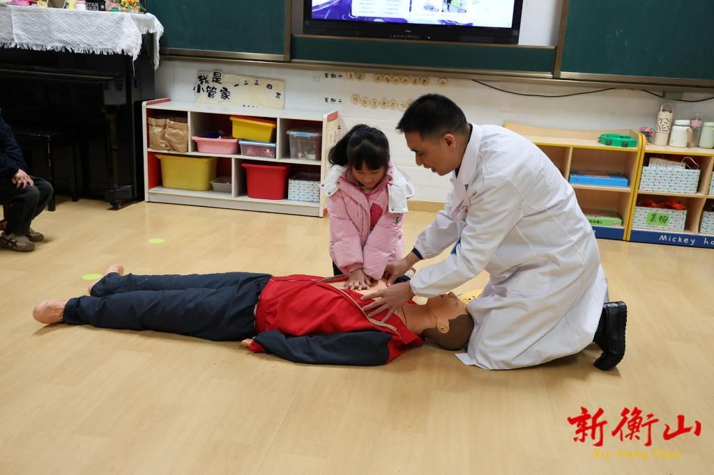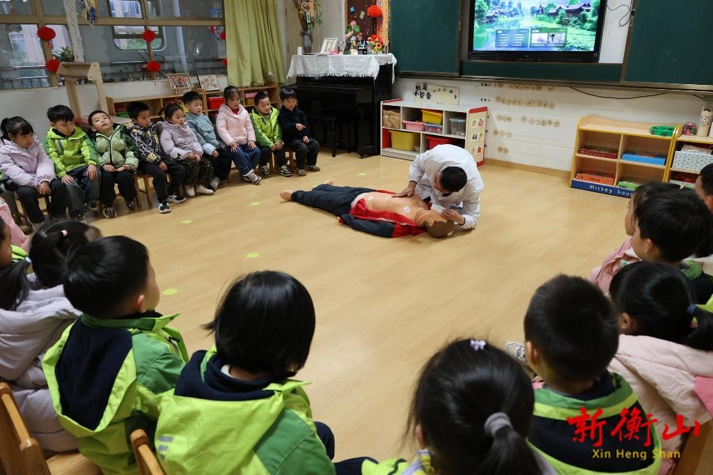 “小朋友们,在外面玩耍的时候有人突然晕倒怎么办?”“怎么正确做心肺复苏?”1月19日,在衡山县新世纪实验幼儿园的课堂里,一场充满趣味的急救科普课正在热烈进行。