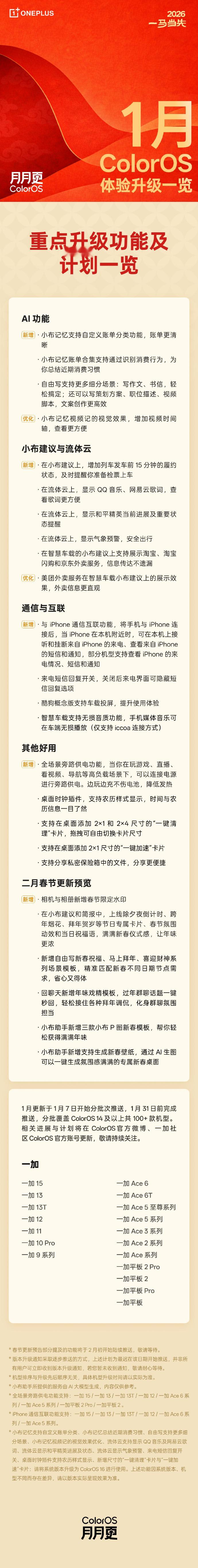 全新系统ColorOS16又又又升级啦!✅ 流体云上新游戏服务、歌词显示、天气预警提醒,新春娱乐出行更舒心;✅ 全场景旁路供电,稳住春节高能时刻;✅ iPhone 通信共享,双持党更便利;✅ 记忆账单分析、小布建议外卖服务车机提醒等好用功能,等你体验。