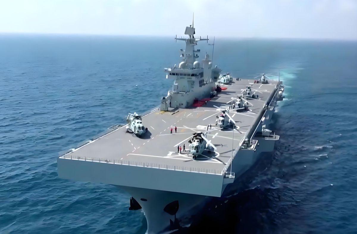 一个月内,075“小平顶”密集出动,台海棋局该收尾了 上个月,解放军在台海周边的大规模演习里,首次出现了一个关键身影——075型两栖攻击舰“海南”舰。它先是前出菲律宾海,引得澳大利亚军机尾随,又迅速加入环台演训编队。 这艘被外媒紧盯的巨舰,短短一个月内动作频频,信号再清晰不过:中国两栖投送的核心战力,已进入高强度、实战化运用阶段。 075的登场,彻底改变了游戏规则。过去我们谈渡海登陆,画面多是拥挤的登陆艇和滩头强攻。但075带来的是一套立体、多维的现代战法。简单说,它是一座能移动的“海上基地”和“直升机机场”。 第一招是“从天而降”,用舰载直升机搭载突击队和轻型装备,垂直打击敌方纵深要害,比如机场、港口,实现快速控制。 第二招是“超视距突击”,利用它肚子里装的726A型高速气垫登陆艇,能在远离海岸的地方,以近60节的速度把主战坦克、装甲车等重装备“甩”上滩头,让传统岸防火力够不着、拦不住。 第三招才是传统的平面登陆,三管齐下,让防御方顾此失彼。这种能力,让解放军的两栖作战从“抢滩”升级为“立体控场”。 为什么它此时如此活跃? 直接背景是美对台近期高达110亿美元的军售勾连。这种挑衅,必须用硬实力回应。075参与的大编队抵近演练,就是对“台独”势力和外部干涉最直观的威慑。 它清楚表明,一旦有事,解放军不仅能封锁、能打击,更能实施大规模、高效率的兵力投送与占领。有台专家自己都承认,075对台防御构成的威胁,甚至可能超过航母。因为航母编队更侧重于制空制海,阻断外敌,而075则是直指本岛、执行终极地面控制任务的“拳头”。 当然,这么大一艘舰,在高强度对抗中必然是对手重点“照顾”的目标,反舰导弹的威胁是现实存在的。所以它的运用讲求体系配合,不会单打独斗。 它的出现,本身也迫使对手必须分散火力、重新布局防御,这本身就是巨大的战略消耗。同时,我们发展076型无人机两栖攻击舰的动向也表明,我们在持续进化,未来两栖作战的样式会更加多元、更难预测。