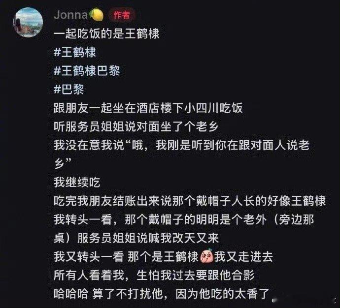 王鹤棣到巴黎也要吃川菜王鹤棣巴黎又去吃川菜了王鹤棣到巴黎也要吃川菜,谁懂这个人