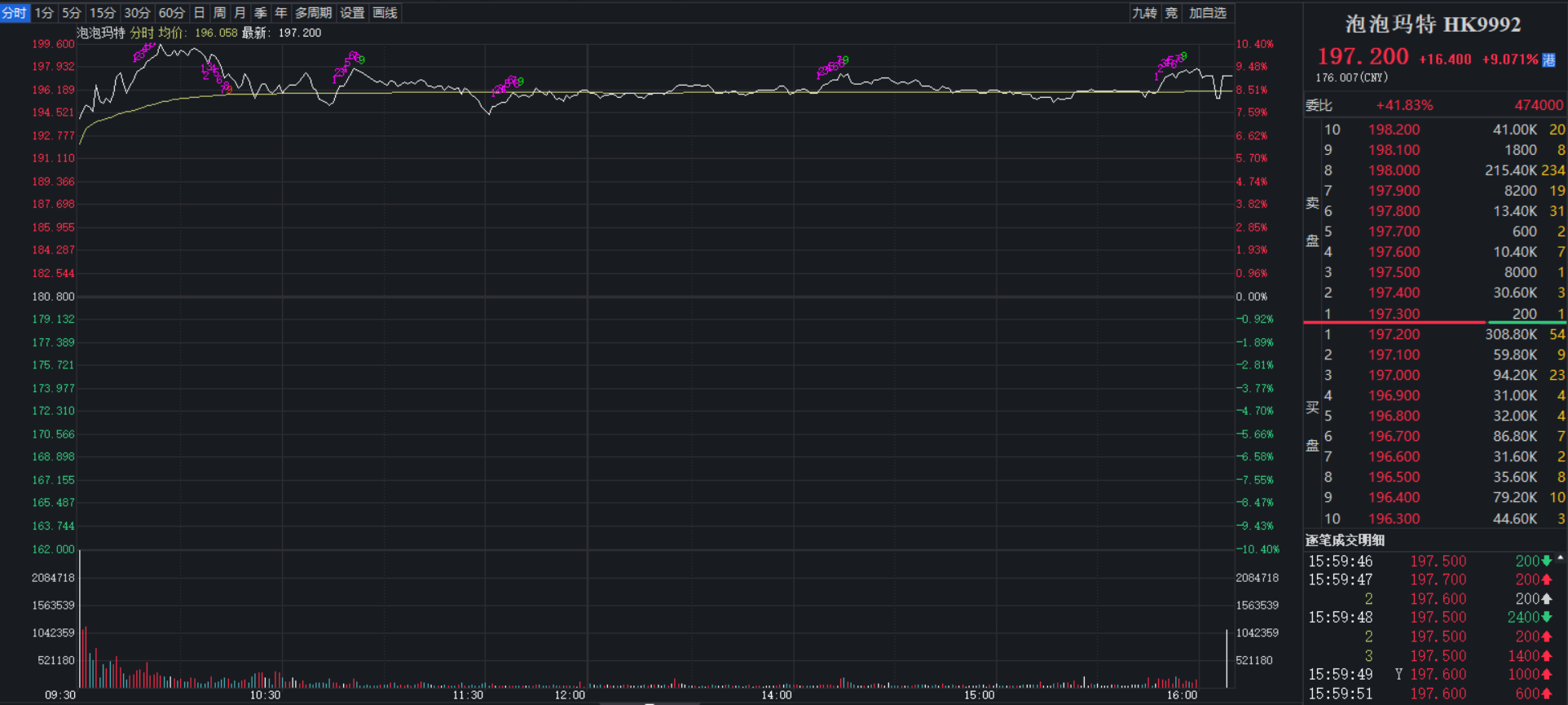1月20日,泡泡玛特(09992.HK)股价大涨。截至收盘,该公司股价报收197.2港元,上涨9.07%。