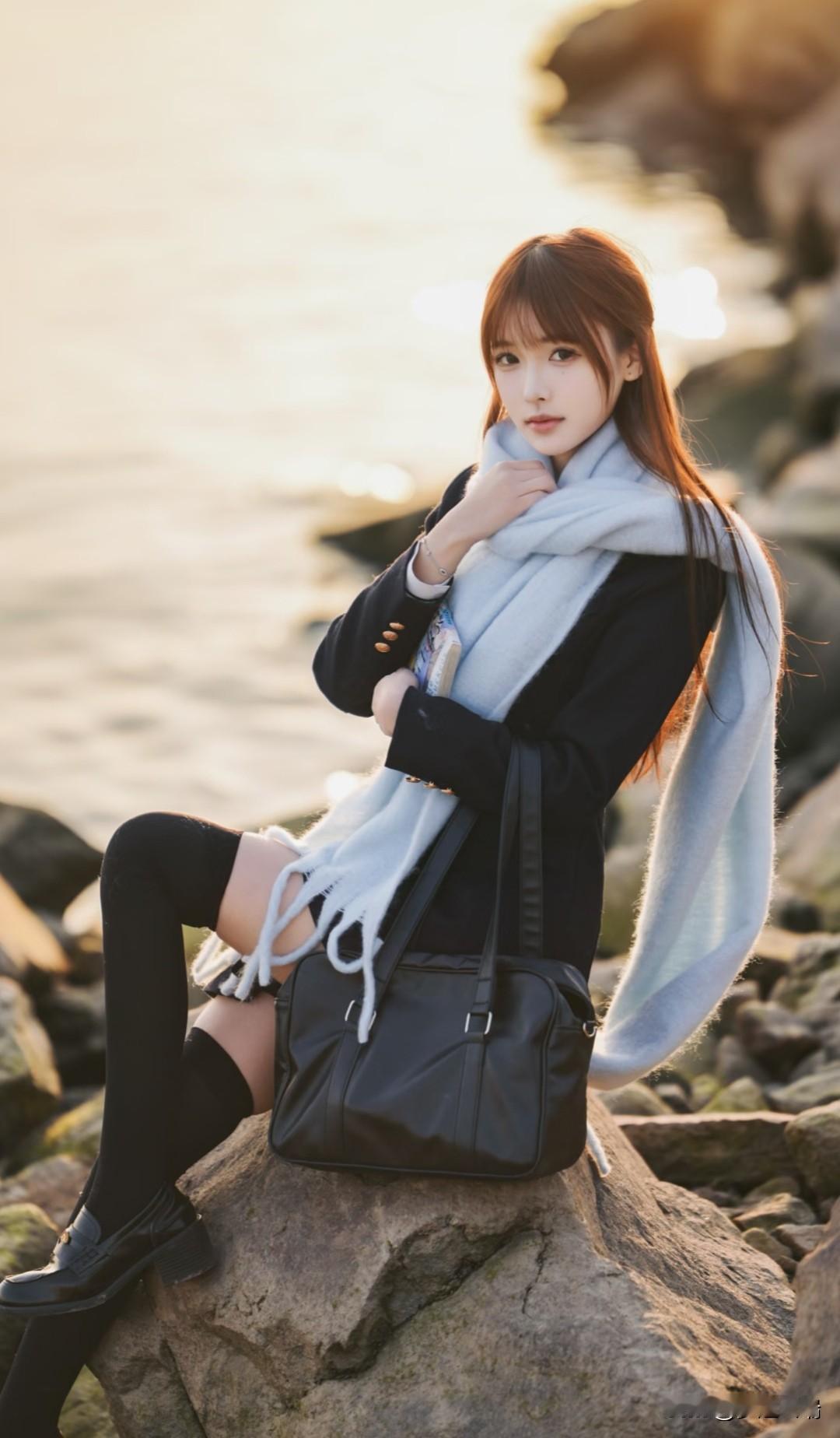 海边漫步,阳光洒满发梢,温柔时光。
