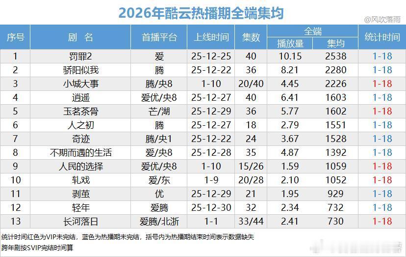 2026年酷云热播期集均(1.18)点播周数据罚罪2 2.85亿玉茗茶骨 1.6
