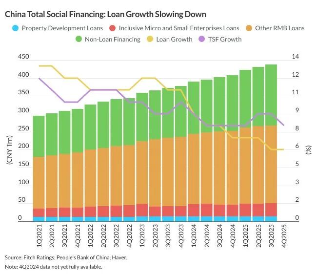 尽管如此,前述举措对重振信贷总需求的有效性仍不确定。惠誉预测,2026年总贷款增速将放缓至6.5%,银行继续将审慎授信和稳定性优先于激进信贷扩张。针对特定领域的再贷款支持政策应能有助于缓解相关领域短期再融资压力(尤其对小微企业而言),并对银行资产质量形成支持。然而,这些领域通常涉及更多弱资质借款人,若相关借款人财务状况无法改善,支持措施可能仅是推迟而非化解底层资产质量问题。