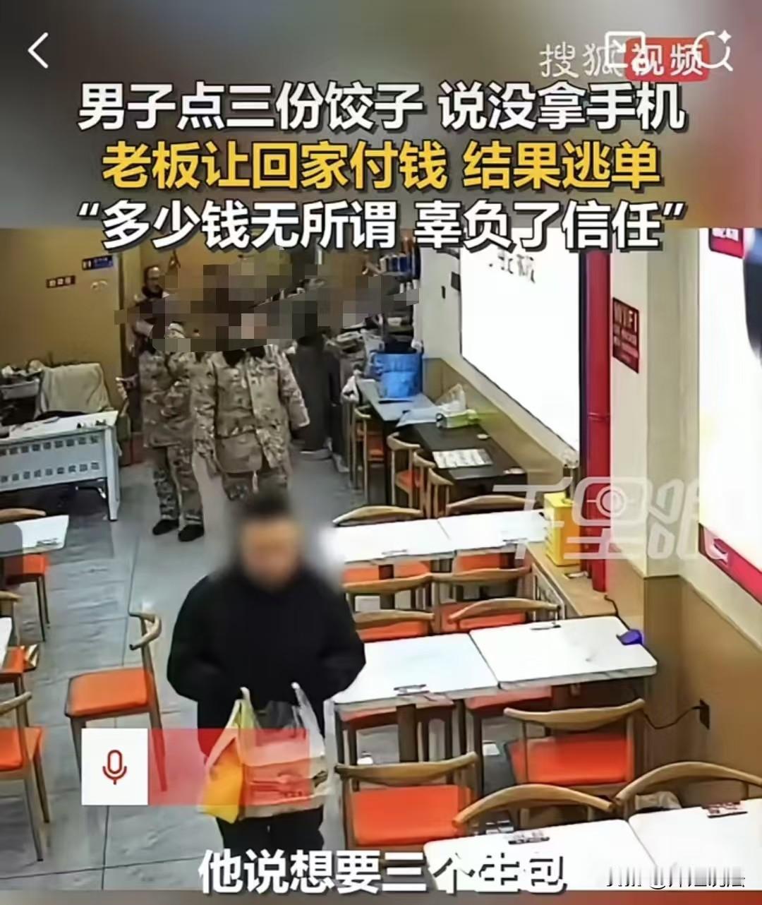 佳木斯,男子买了三份饺子,想拿回去给老婆孩子煮来吃,结果发现自己没带现金,手机也落在了车里,就尴尬地站在那里。老板娘赶紧说,你把饺子拿走吧,到时候开车过来的时候再付。男子很高兴,感谢了老板娘后就走了,结果老板娘等到天黑,男子都没有来付账。 这家店的老板娘特别漂亮,也很善良,她的生意从来不缺顾客,就因为他们的饺子皮、饺子馅都特别新鲜,从来不会用过夜的。 很多顾客来吃了觉得好吃,还会给家人打包回去,这种情况特别多。 就在老板娘还在忙碌的时候,有一位中年男子走了进来,老板娘问他吃什么。 中年男子没有多余的话,说:“我打包三份,要带回去给我老婆孩子煮的。” 老板娘心中一暖,觉得这个男子还特别有爱心,这么冷的天还专门出来给老婆孩子买饺子,对他产生了一些敬佩。 老板娘三下五除二就给他打好了三袋饺子,还叮嘱了一些注意事项,让他拿回去赶紧煮,趁着新鲜味道更好一些。 男子答应了,可是手在裤兜里一摸,发现手机在车上,又没有现金,不由得犯了难:“这该怎么办呢?” 老板娘平时就很随和,再看着男子是给老婆孩子打包回去的,觉得他人品绝对不会差,就说:“这有什么呢?你过去把手机拿过来付账就行了。” 男子看了看外面,可能嫌路程有点远,心中顿时起了犹豫。 老板娘赶紧说:“你把饺子一起带过去吧,到时候你开车路过这里的时候直接付账,不是挺方便的吗?” 男子脸上突然露出了笑意,说:“这样也行,免得来回折腾,到时候耽误了回去给老婆孩子煮饺子的时间。” 男子赶紧谢了老板娘,又问:“你不怕我跑了,到时候不付你钱吗?” 老板娘笑了笑:“我怕啥呀,这才值几个钱,三袋才62元钱,再说看你的样子也不是这样的人,对家人好的人绝对做不出这种事。” 就这样,男子向老板娘道谢后说了声再见,随后离开了店铺。 本以为不一会儿,男子开着车路过的时候就会付账,谁知道老板娘都关店门了,也不见男子过来,心中就打起了鼓:“这人难道真的是吃霸王餐吗?难道他来的时候就有意说自己没带手机,就是赌我的善良之心?” 不过老板娘还是想再等等,万一对方确实有难处,万一事情一忙就忘记了呢? 可是隔了两天,男子还是没有来。这时她才确定,男子是有意为之,就是赌她的善良,赌她会让他把饺子拿走,之后就不来付钱。 她觉得自己的真心白费了,店员也劝她:“以后别这么好心了,不是所有人都像你这样善良。” 可是老板娘却说:“我天生就是这个样子,要让我改变还真难。不过我还是想把视频发出来,把自己的委屈和被骗的事情经过说一番,也好宣泄一下自己的不满。” 她并不是心疼那62元钱,就是不满意自己的善良被人利用了。她以后遇到这种事情可能还会选择相信别人,但她希望遇到的每一个人都和自己一样善良。 这个饺子价值只有62元钱,女子有没有必要报警维权呢? 《民法典》第595条:买卖合同是出卖人转移标的物所有权于买受人,买受人支付价款的合同,男子取走饺子即需履行付款义务。 《民法典》第626条:买受人应当按照约定的数额和支付方式支付价款,双方约定事后付款,男子拖欠已违约。 《治安管理处罚法》第9条:民间纠纷可由公安机关调解,62元属小额民事纠纷,警方优先调解而非立案处罚。 本事件中,62元虽金额小,报警可固定证据+调解促付款,成本低易操作;若调解无果,凭出警/监控记录走小额诉讼能维权,核心是止损防恶意欺善。 觉得老板娘该不该维权呢?素材来源于搜狐新闻