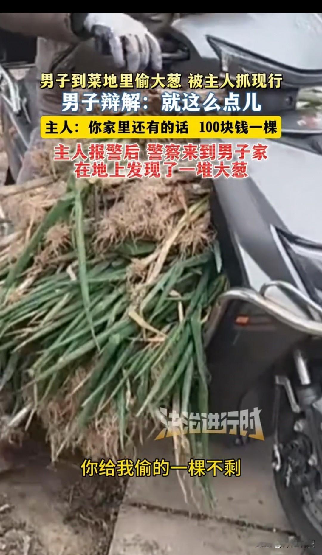 江苏,男子地里的大葱被偷走了一大片,第二天又看到那男子骑着摩托车来偷大葱,对方还