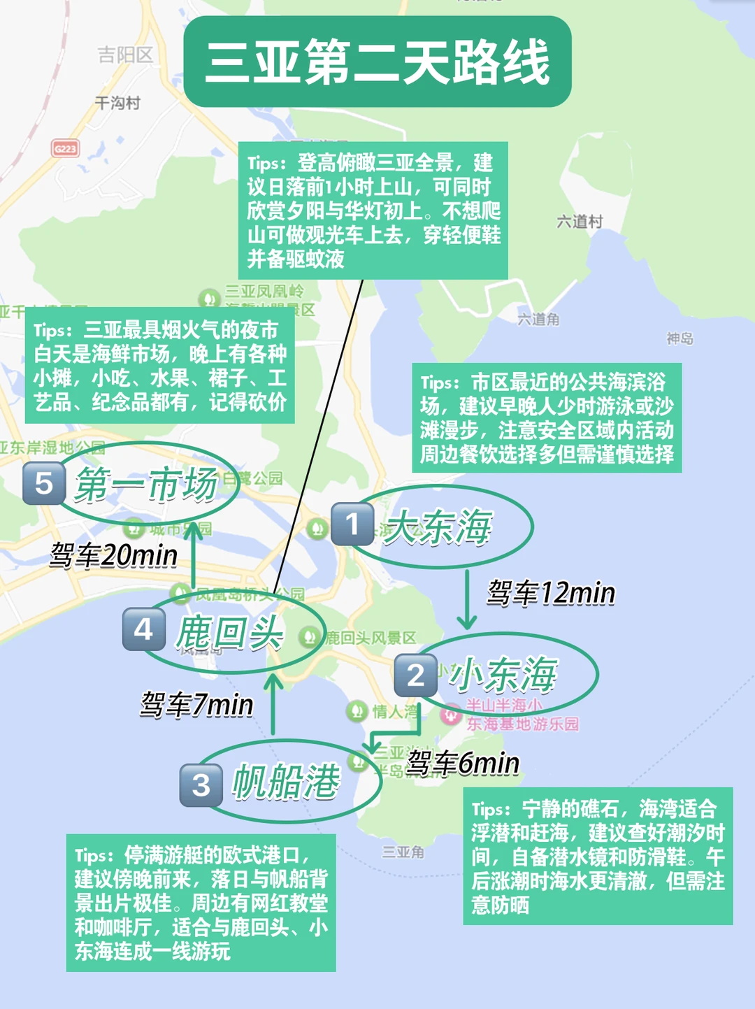 Day2:大东海→小东海→半山半岛帆船港→鹿回头→第一市场夜市