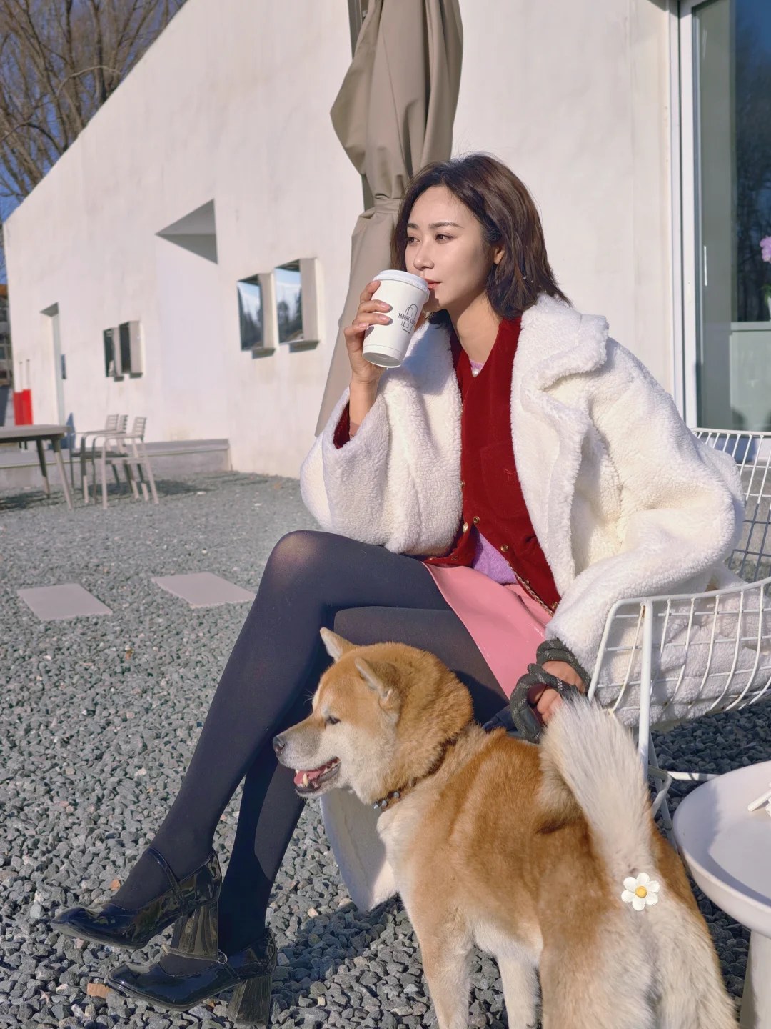 狗狗🐶社交天花板!喝咖啡耍草坪两不误