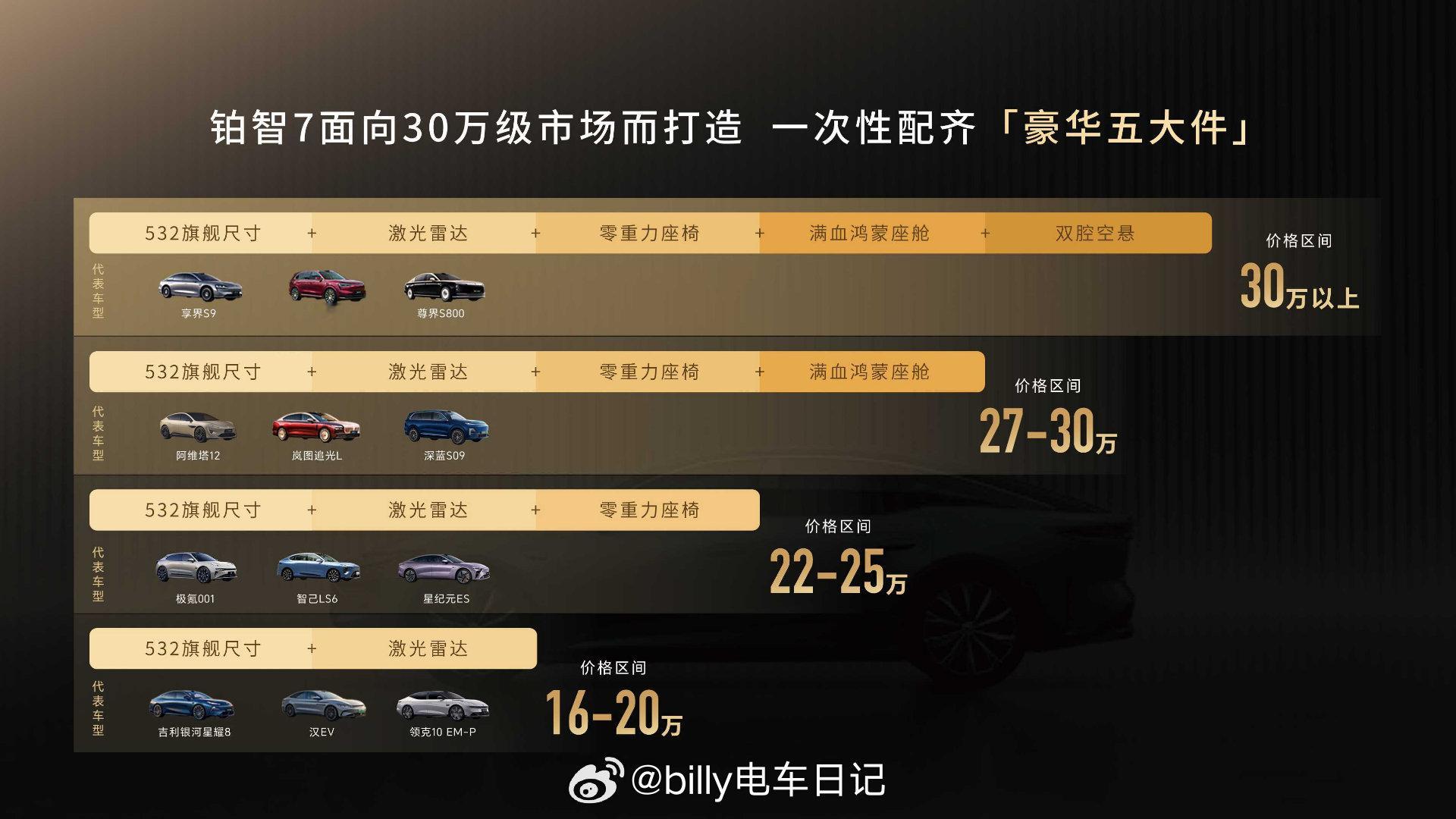 如果只看参数,你可能会觉得铂智7“配置给得很猛”;但真正值得聊的,其实是它做了一件行业里第一次发生的事。铂智7把目前只集中在30万以上车型上的“豪华五大件”——532级豪华大车格、双电机零重力座椅、Momenta R6智驾辅助、满血版鸿蒙座舱、智能预瞄双腔空气悬架,一次性、完整地打进30万以内区间。不是选装,不是分版本,而是直接配齐。这在当下的豪华纯电市场里,几乎没有先例。但铂智7最特别的地方,并不只是“给得多”。你能明显感觉到,这不是那种为了冲热度而简单堆料的思路,而是带着丰田长期造车逻辑的豪华表达:对舒适性的优先级、对整车协同体验的克制、以及对长期可靠性的保守边界,都被系统性地放进了电动平台和智能体系里。这也是为什么我更愿意把铂智7称为——丰田在电动时代交出的第一台真正意义上的豪华纯电旗舰。它不是用参数“对标”谁,而是试图用丰田自己的方式,重新解释豪华在电动时代该怎么成立。铂智7预计将在2026年3月上市。如果最终定价和配置兑现,现在这个级别的豪华纯电市场,恐怕很难再假装它不存在。丰田豪华旗舰铂智7定于3月上市铂智7把豪华五大件一次性配齐
