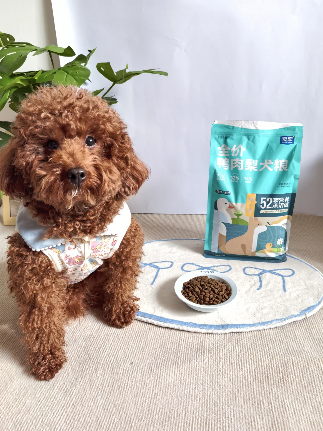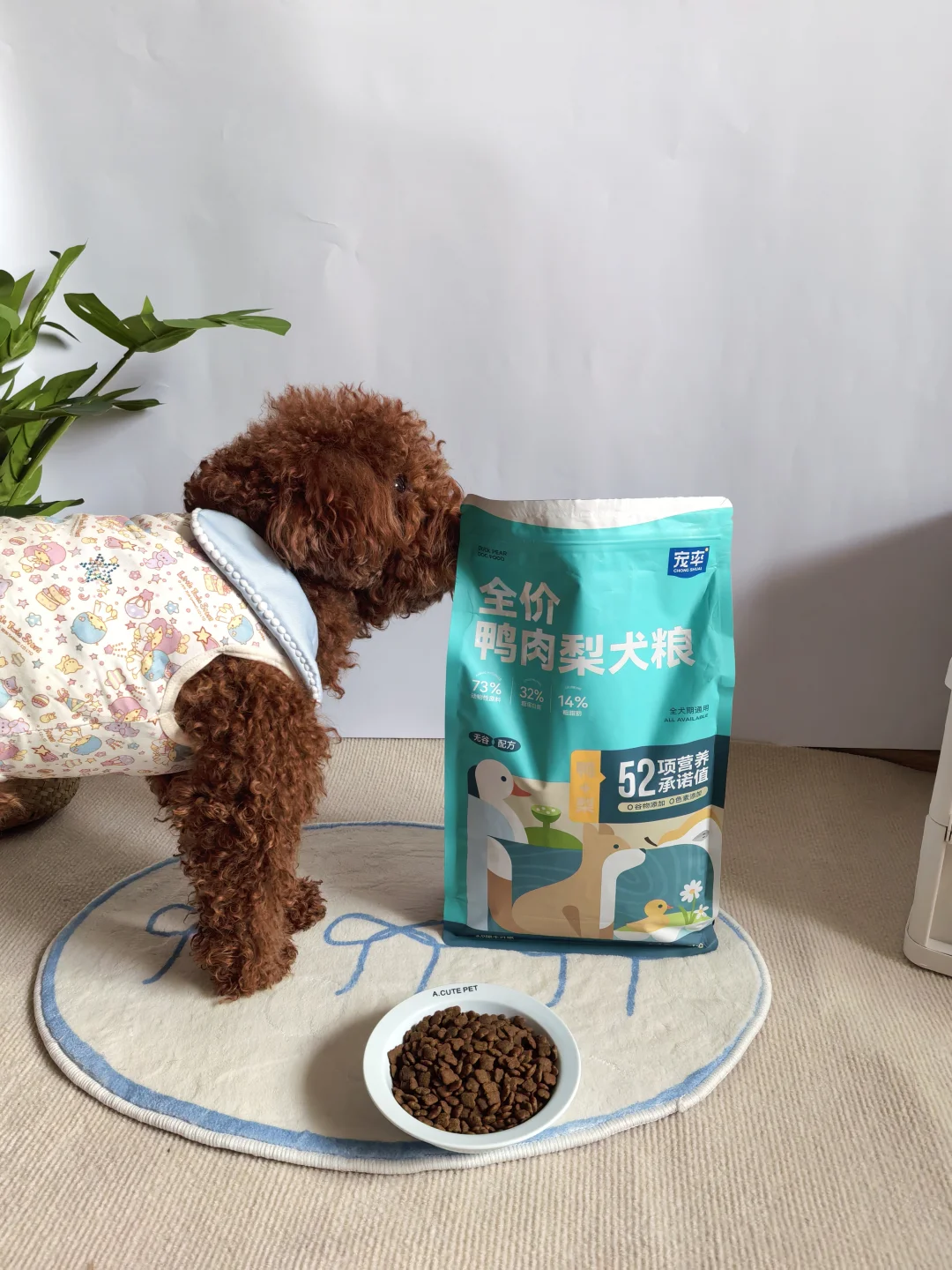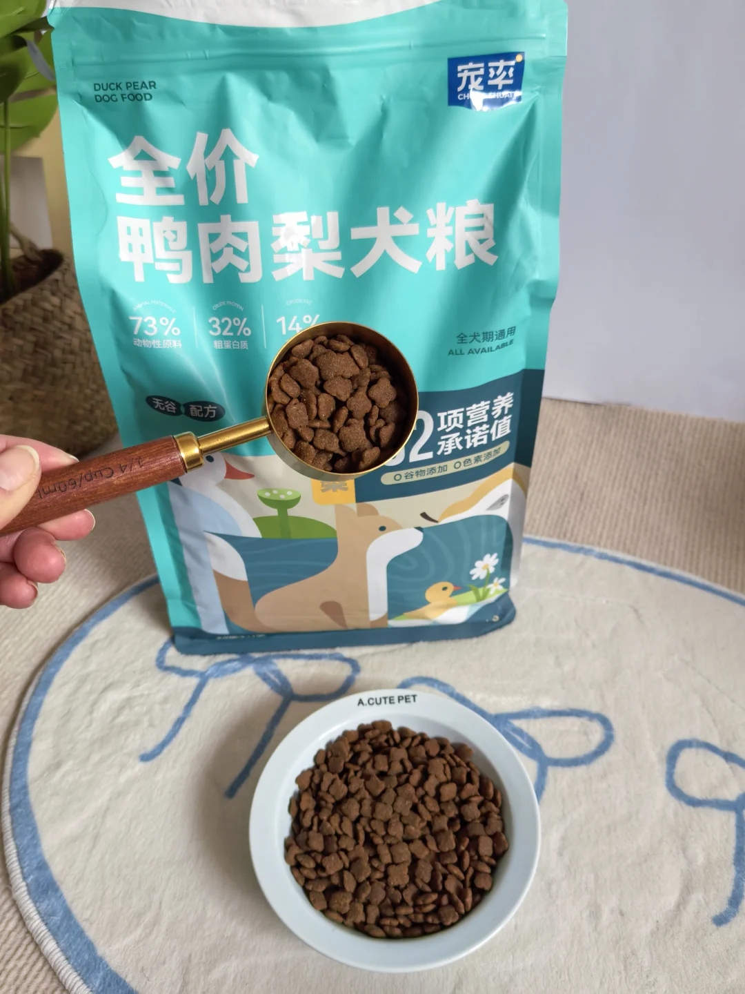 前阵子愁死我了,我家狗泪痕重得天天擦,跑两步还老抻腿——刷到宠率鸭肉梨狗粮就试试,没想到这么省心!