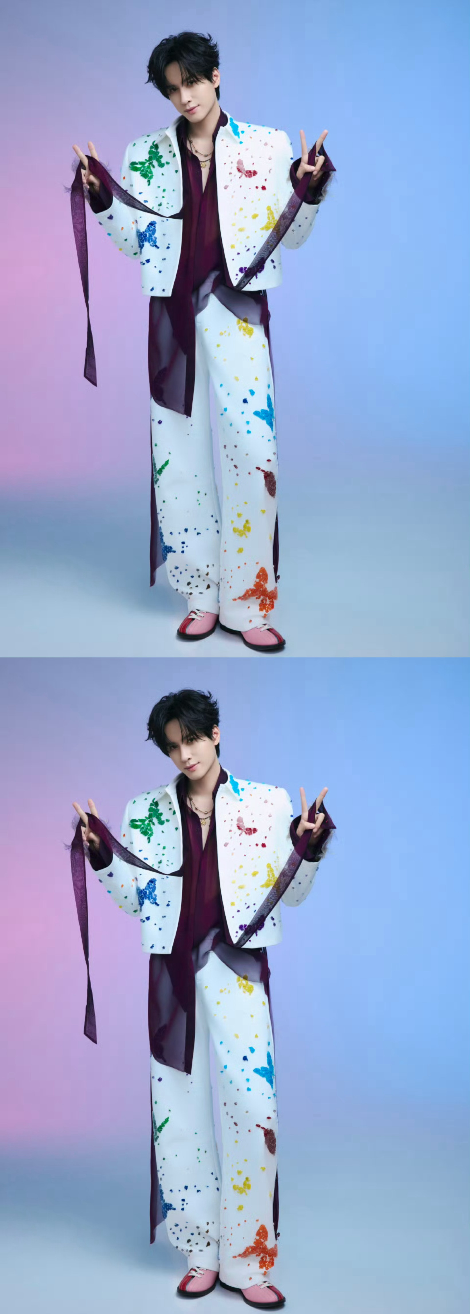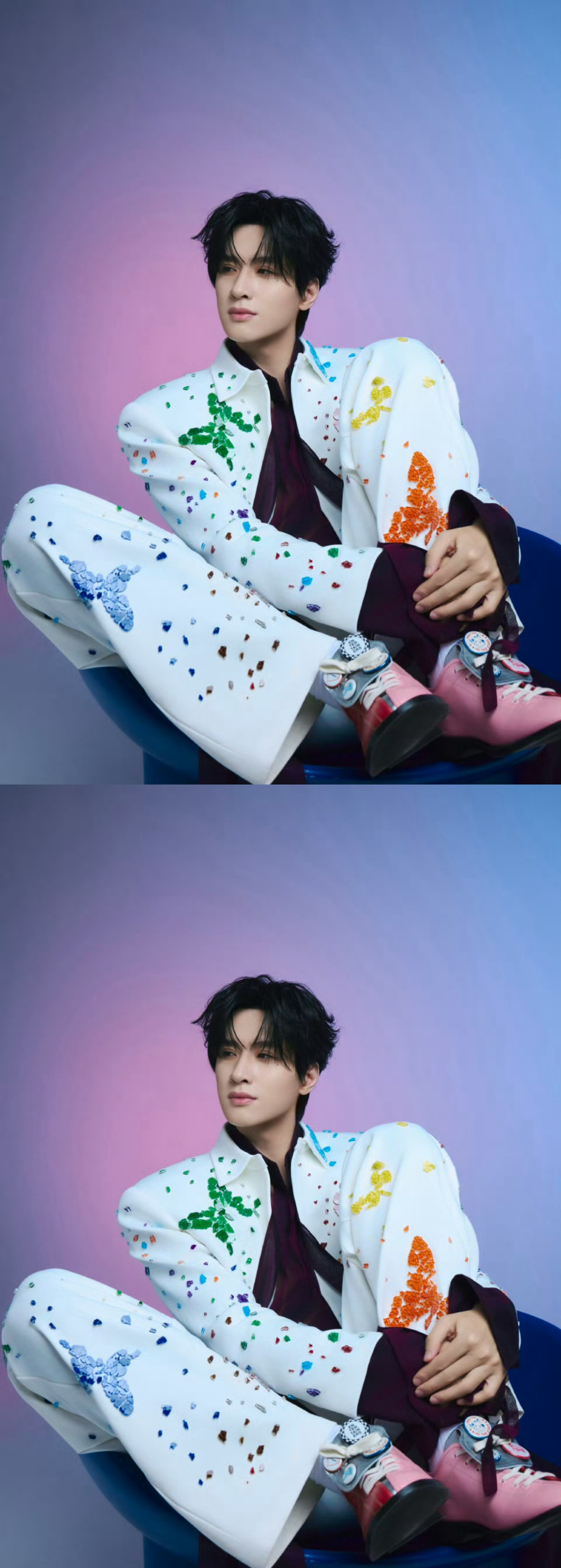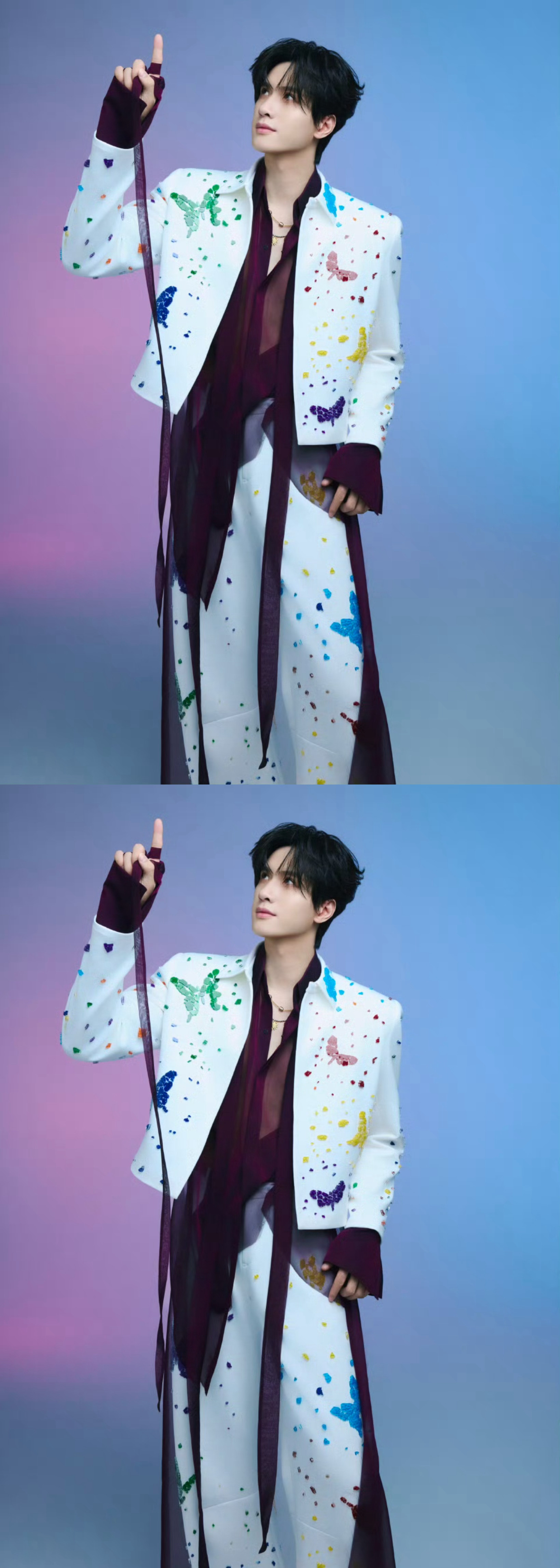 展轩今日份新鲜营业照来袭,蝴蝶白西装套装,手上也戴了蝴蝶,好帅啊
