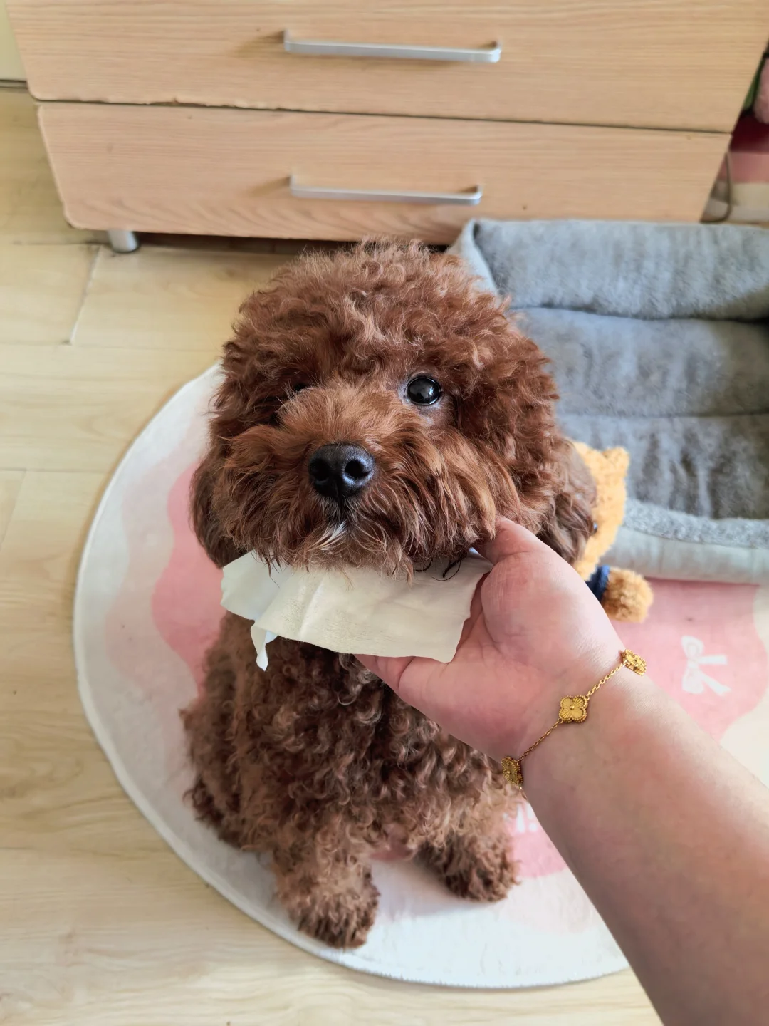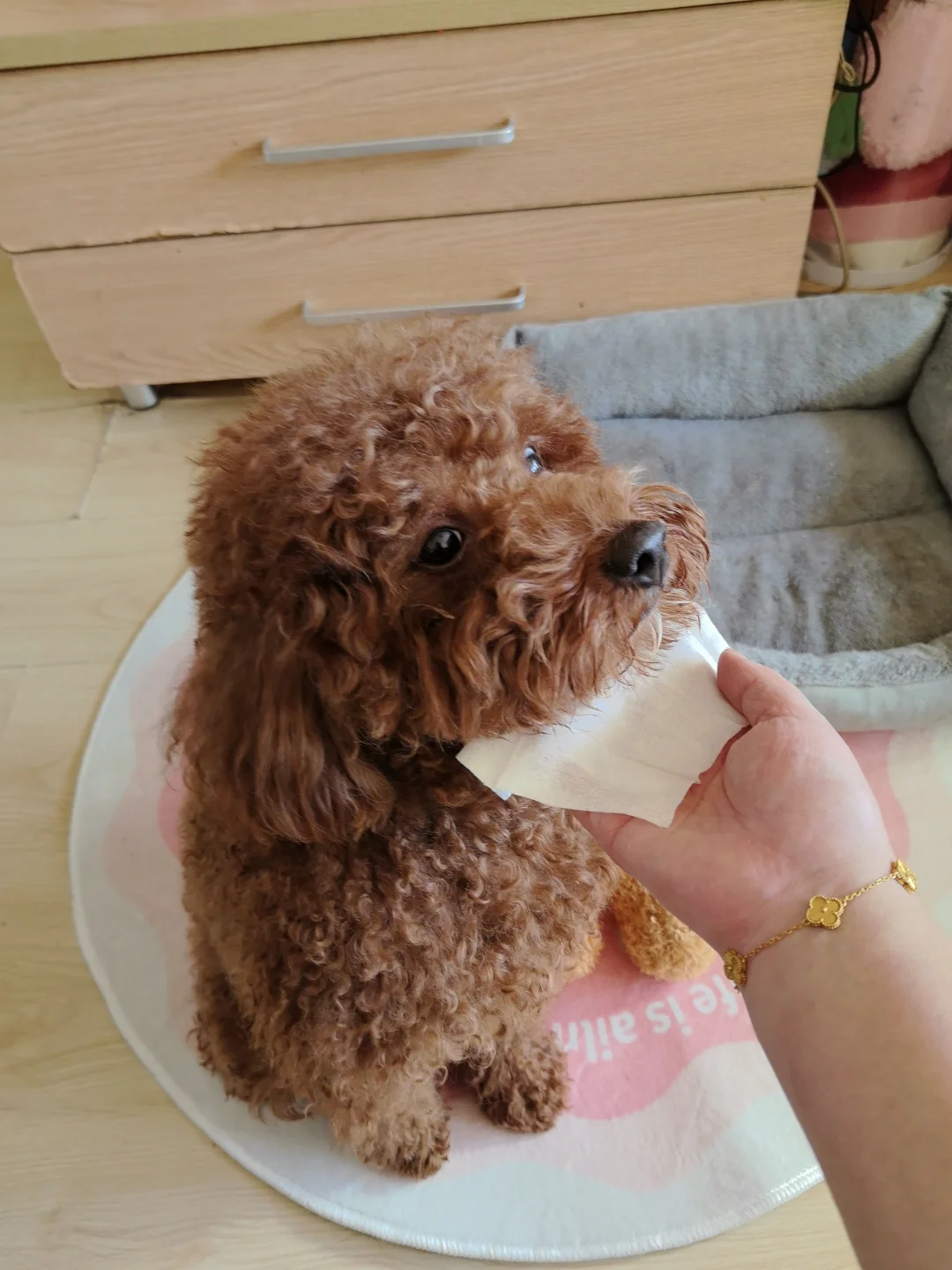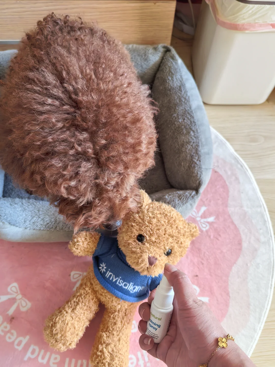 今天回到家,发现豆丁居然没有像以前那样疯狂挠门嚎叫,而是安静地趴在垫子上,尾巴轻轻摇晃着迎接我。那一刻突然鼻子一酸——我的小狗终于学会了信任,它相信,不管我离开多久,都一定会回来。 🆘曾经那些焦虑信号 还记得三个月前,每次我拿起钥匙它就开始喘气、追着我舔爪子,甚至出现过度换气的情况。门一关,楼道里就能听到它凄厉的吠叫。有次邻居发来视频,它竟然把门口的地垫撕成了碎片,爪子都挠出血。宠物行为师说,这是典型的分离焦虑! 我试过的所有方法 1. 脱敏训练:我故意拿钥匙却不出门,甚至背着包在家看电视。从离开30秒开始,慢慢延长到5分钟、半小时。 2. “阿贝贝”屋:把航空箱布置成洞穴状,三面遮光,放上我穿过的旧T恤,喷上点安抚喷雾——剑桥大学研究显示,主人气味能让狗狗皮质醇下降29%。 3. 关键:出门前,在狗窝、狗玩具上喷几下绿美笛安抚喷雾。是纯天然的植物味道,没有酒精,用了之后还发现连之前害怕打雷下雨天都不怕了,喷完它明显安静很多,不会躲到沙发底下发抖了。 真正让豆丁理解“回来”概念的,是定时 仪式感。我每天固定早晚七点遛弯,出门前一定会说“等妈妈回来”;还会用自动投食器在预估到家前5分钟投放零食,让它把“咔哒声”和“团聚”关联起来。现在它听到投食器响动就会摇尾巴去门口,而不是一直死盯着门缝。 现在看着豆丁安心睡着的模样,我想起行为师的话:分离焦虑的治愈,本质是重建信任。狗狗不是学会了孤独,而是学会了期待。信任不是不依赖,而是确信你会回来。