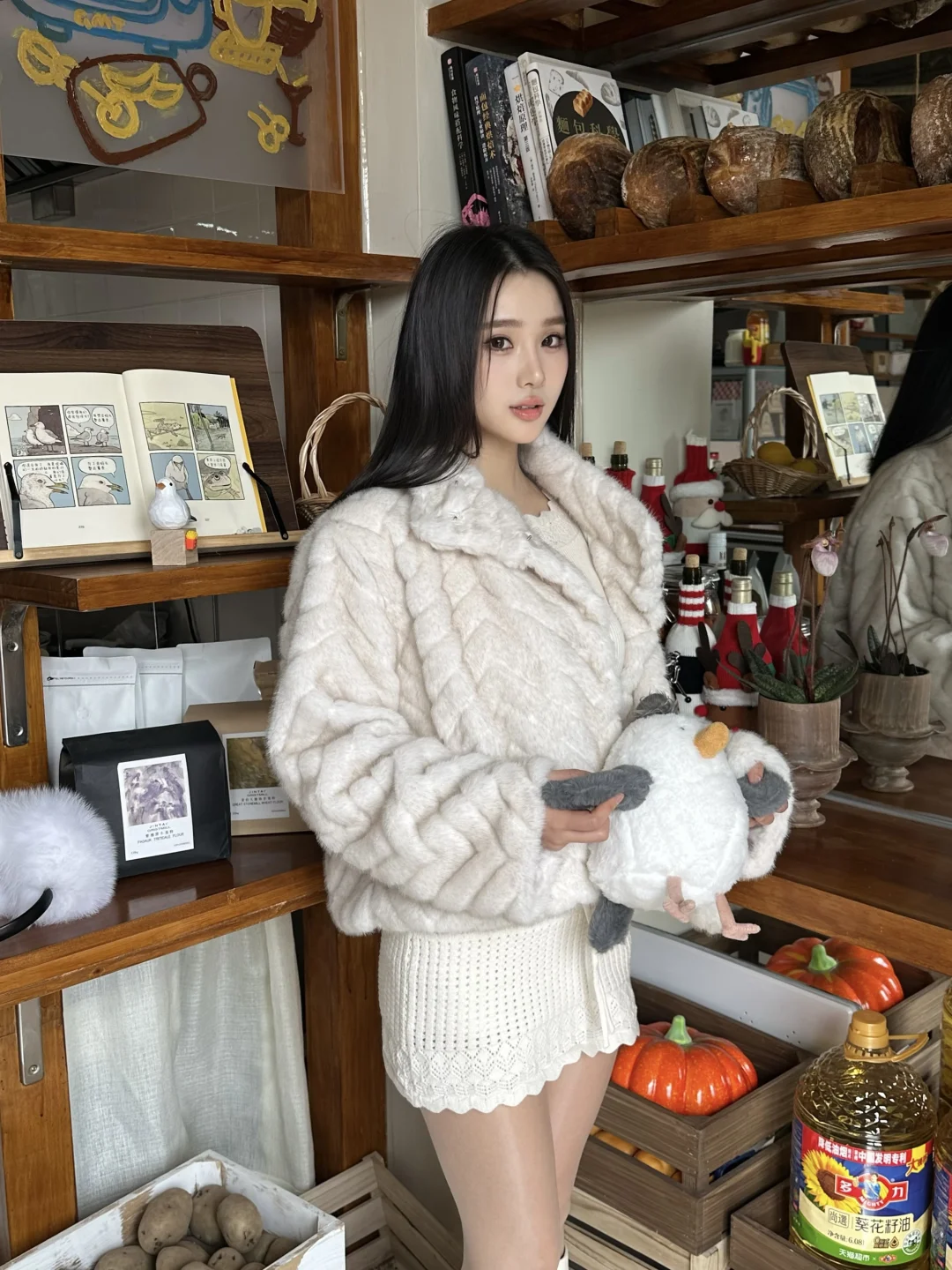 白色真的太适合冬季了!软糯的白色针织配毛茸茸皮草,简单干净。 这是今年唯一拍的一棵圣诞树,现在才发,哈哈