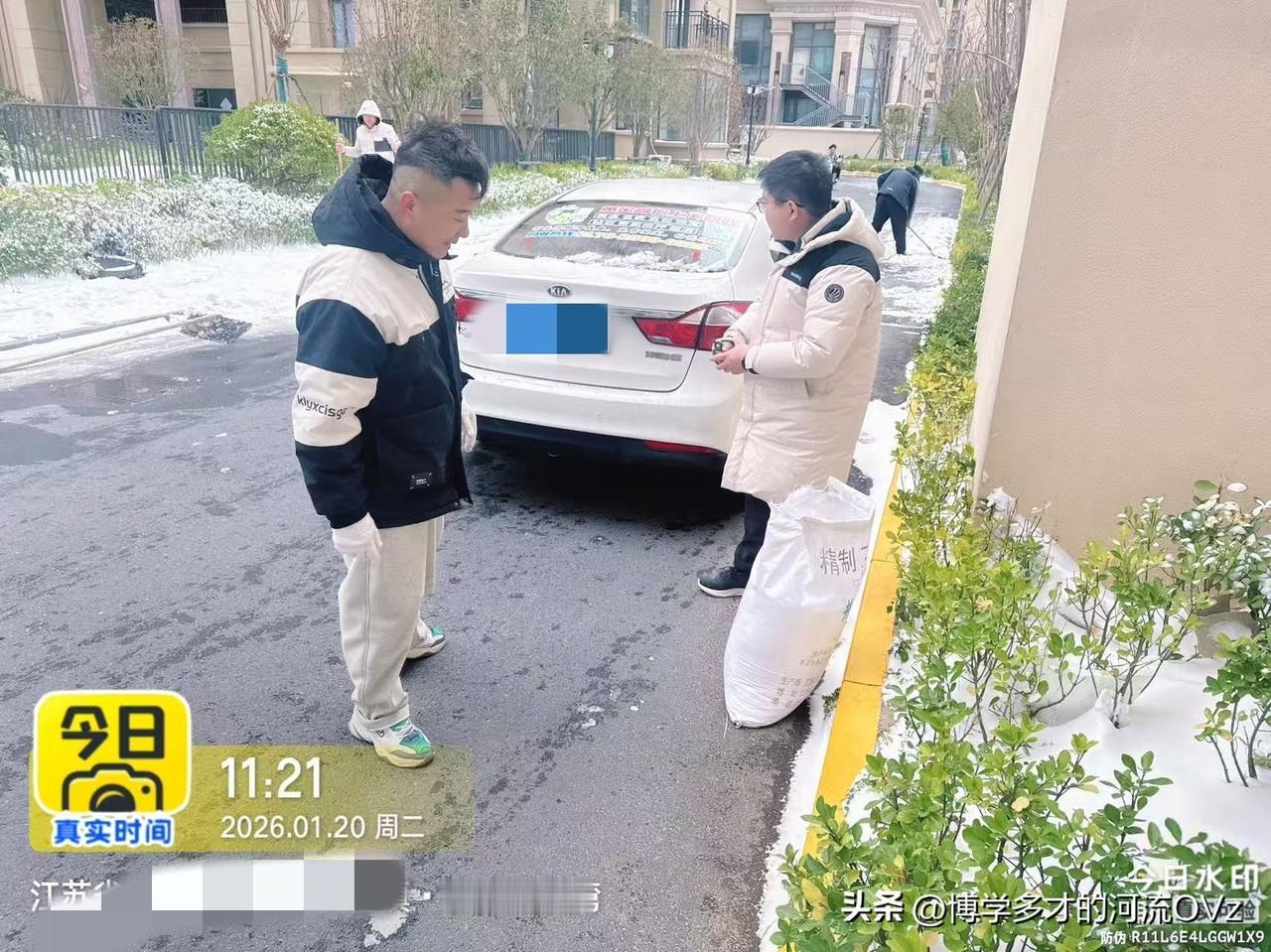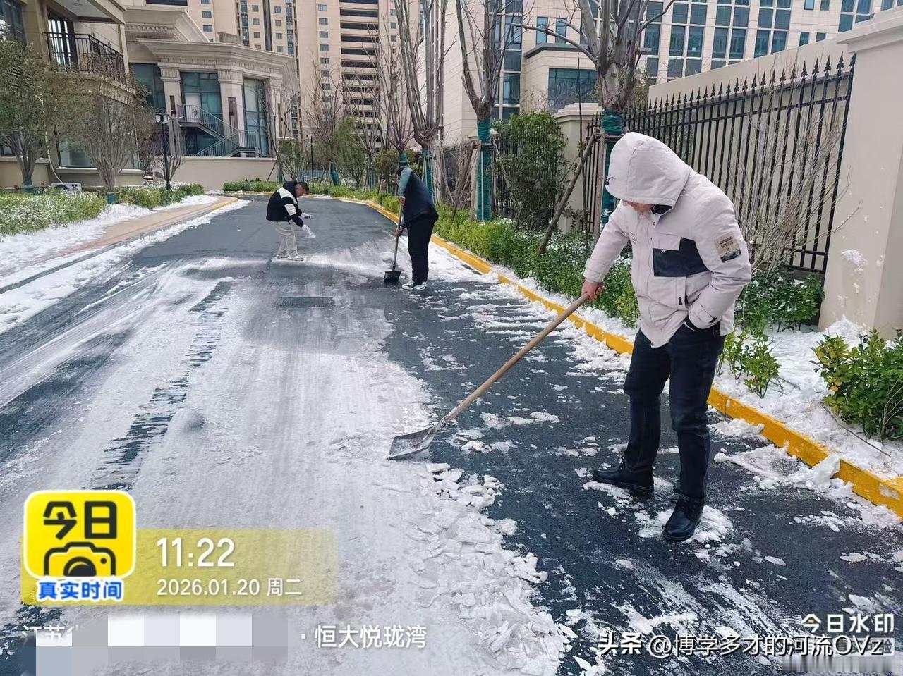 今天是金碧物业走后的第81天。 就像唐僧西天取经经历81难,对于我们小区来说,也是经历了81难。带头大哥冒着风雪带人打扫积雪,昨晚,纷纷扬扬的鹅毛大雪,下了一夜,晚上带头大哥就撒了盐,早上为了让上班的业主,可以把车子开出去。他穿起衣服,带人把小区里的道路一条一条的清理出来。又带人把地下车库的出口的积雪也清理干净,否则那陡坡上的积雪湿滑,汽车难以出来。 即使下了大雪,外面寒气逼人。今天值日打扫卫生的业主,也不畏严寒,把1楼大厅和电梯打扫干净。并且还用了香氛,电梯里面香气袭人,不再是那恼人的香烟。 今天,全县中小学停课一天。