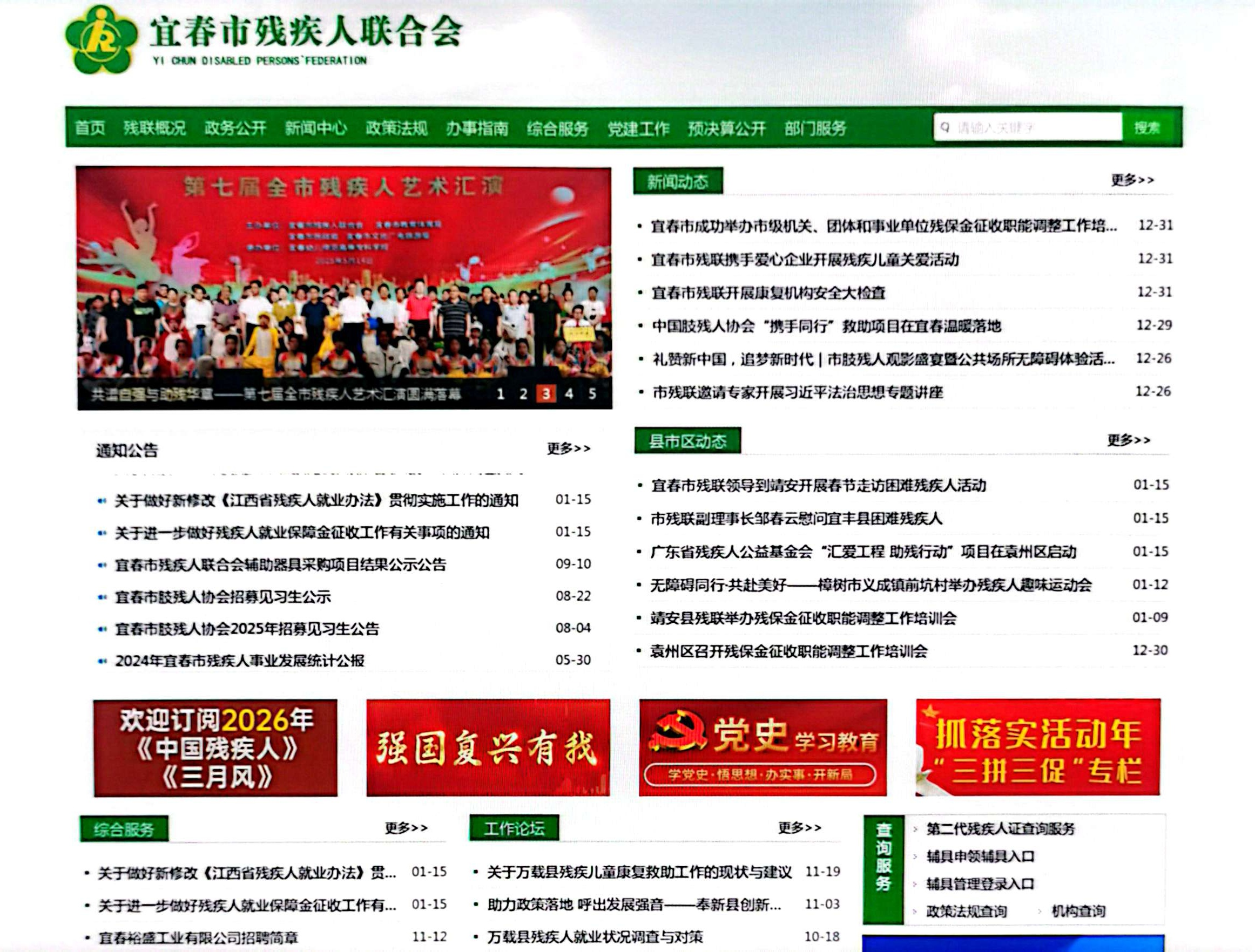 第一步:登录“宜春市残疾人联合会”官网