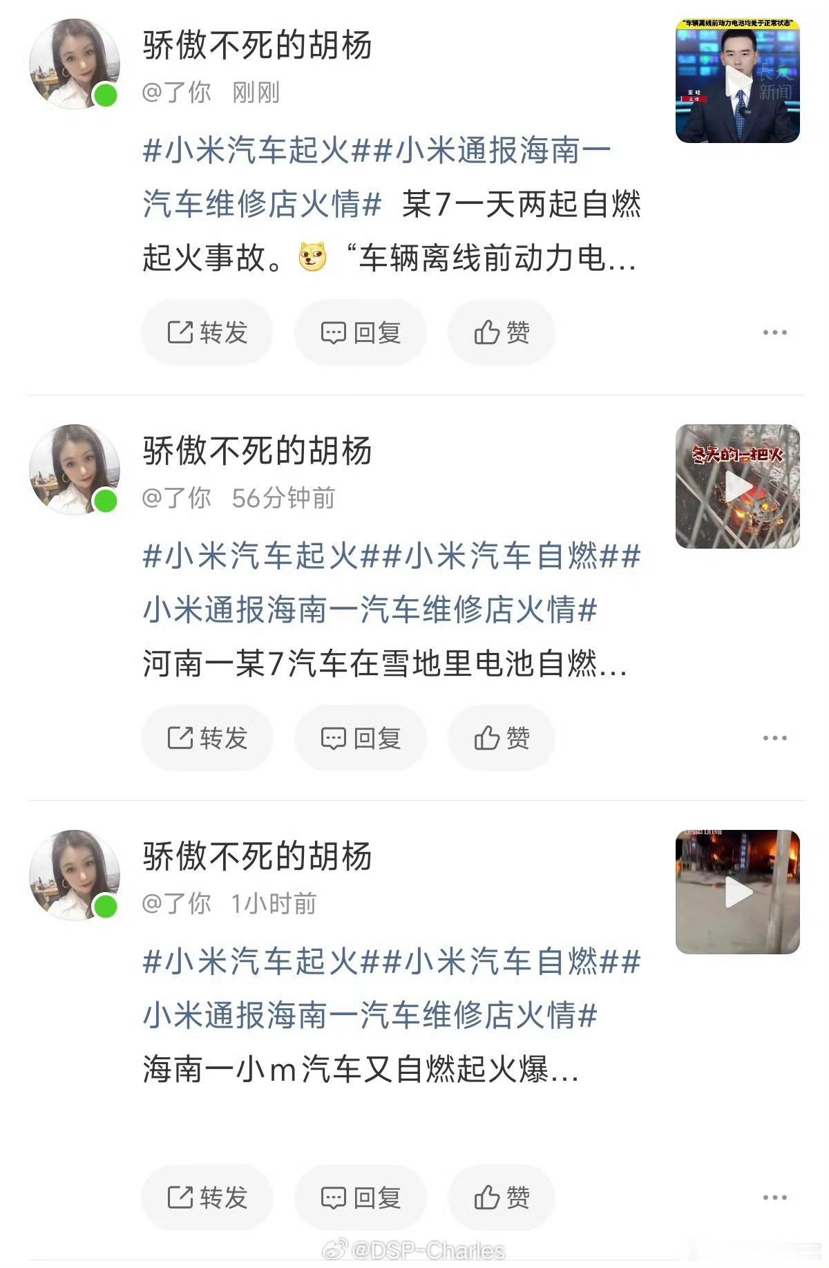 小米官方已经发布通告,两车均非自燃起火,结果这人一直带节奏自燃…