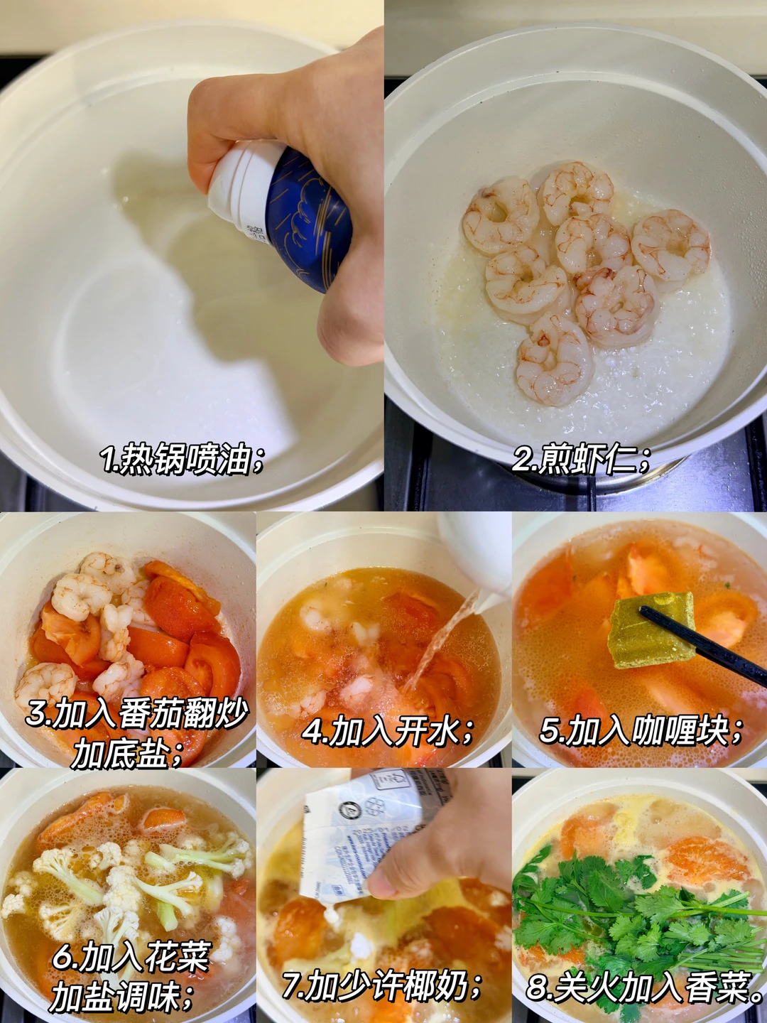 😍过年期间少不了各种聚餐,现在必须开始为过年开始做体重准备了,抓紧时间先饿一饿,瘦一瘦💪。 . 💛晚餐盘 花菜🥦/虾仁🍤/西红柿🍅/香菜/黄瓜🥒/咖喱 🧡制作方法 1️⃣热锅喷油,煎虾仁; 2️⃣倒入番茄,加底盐翻炒出汁; 3️⃣加入开水,加咖喱块,煮开; 4️⃣加入花菜,加盐调味; 5️⃣加少许椰奶,调味; 6️⃣关火,加入香菜,摆盘加黄瓜片。 —————————————————————————— 财富咖啡真的蛮灵的,25年的黄金很给力[赞R]