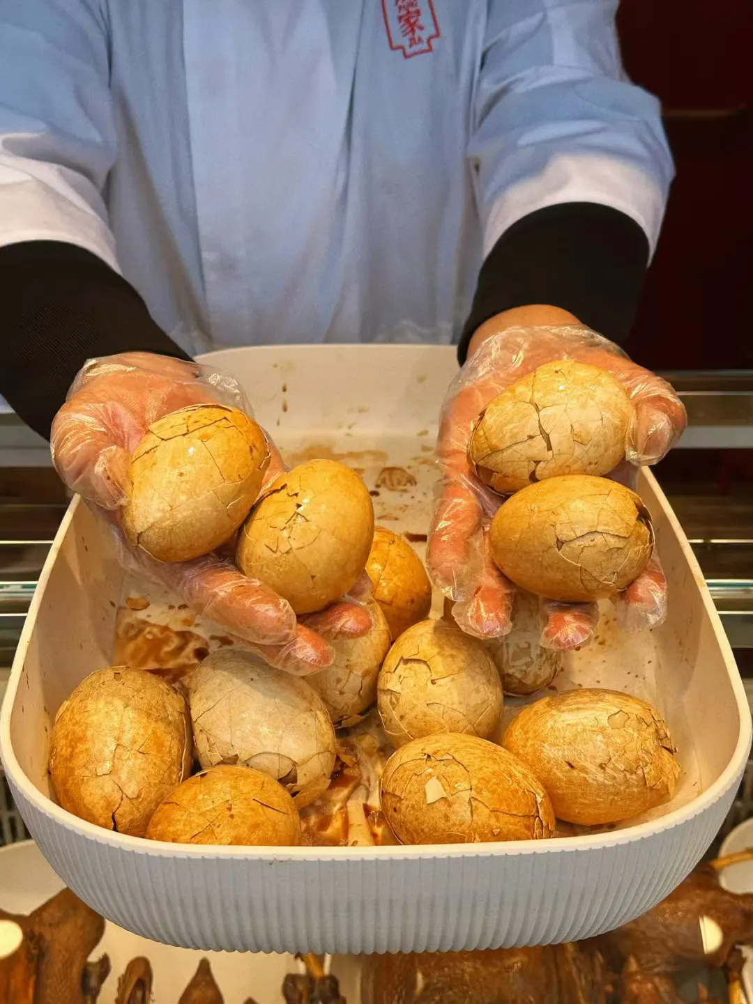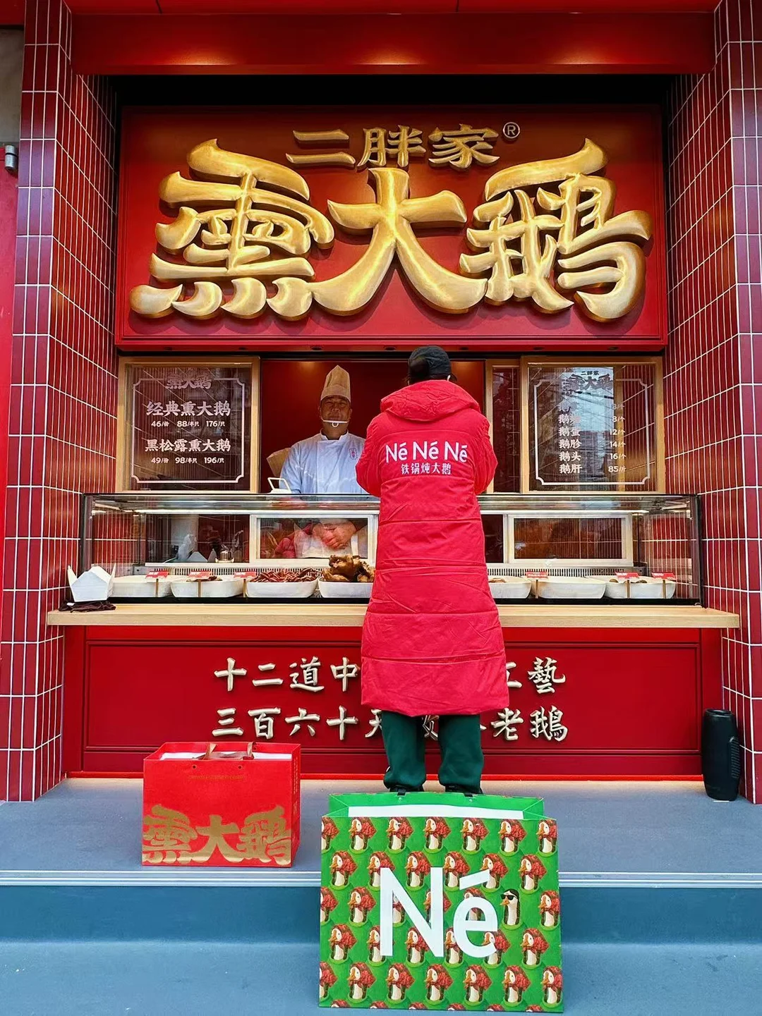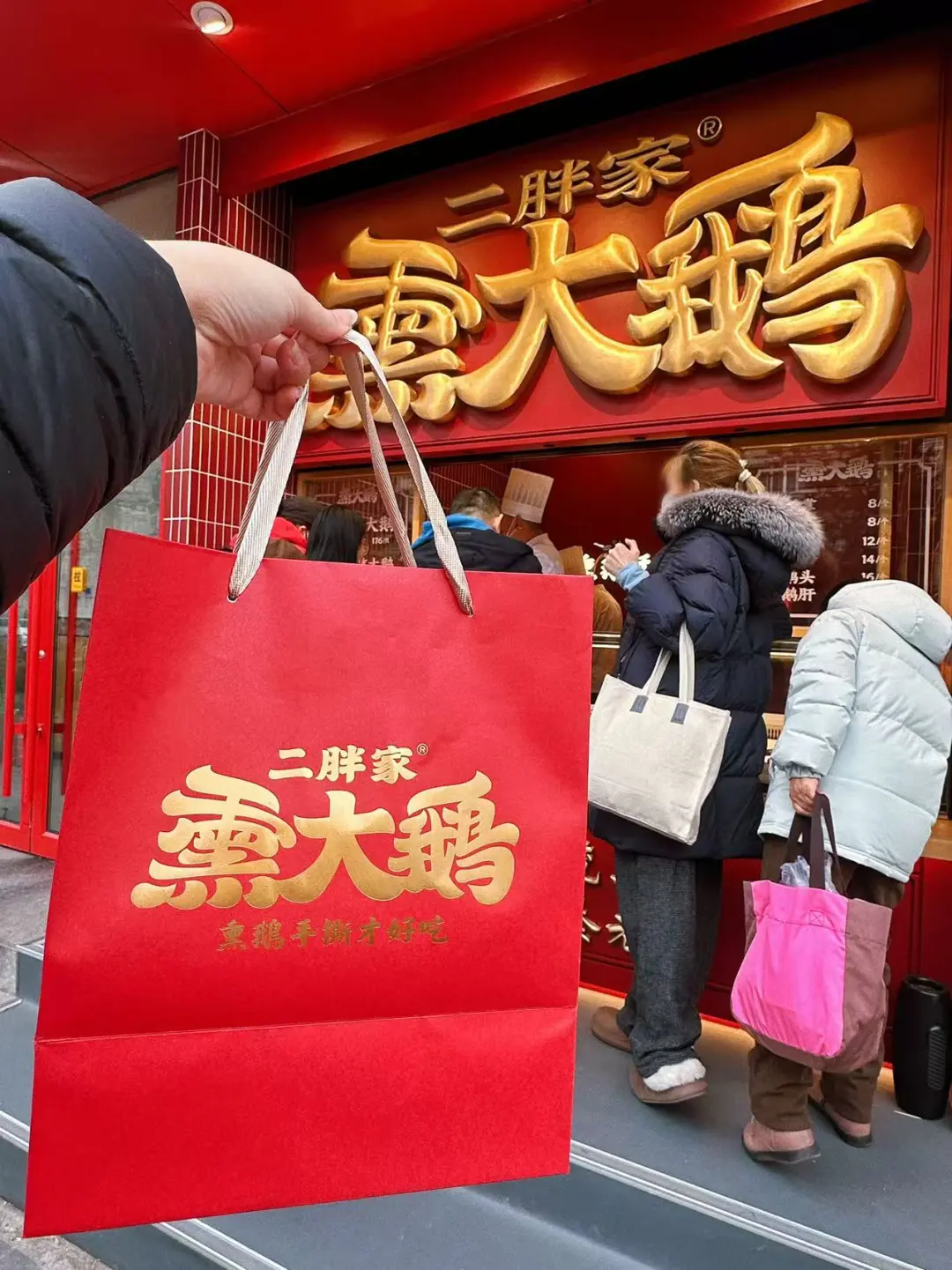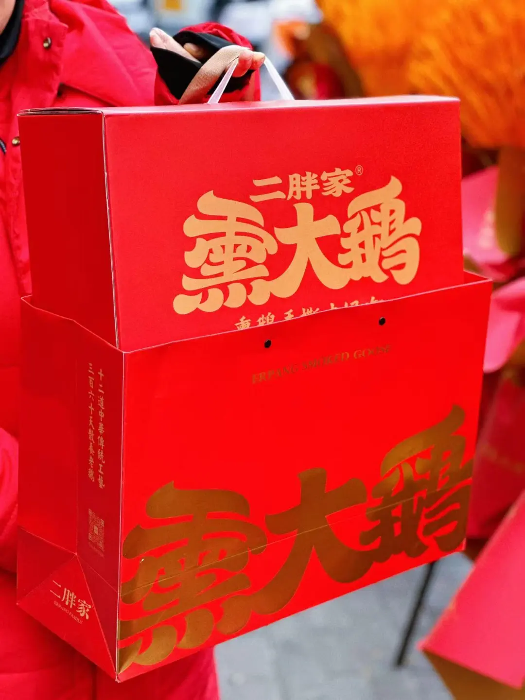 开了开了…终于开了! 爱吃大鹅的小伙伴儿可有口福了 二胖家的熏大鹅专卖店 有招牌熏鹅和黑松露熏鹅两种口味 老大一只鹅,通体红棕色,油亮油亮的 看着就好诱人😍 除了卖整只鹅的,还有鹅翅、鹅掌、鹅头、鹅蛋 可以让店里伙计帮忙斩好带回家 也可以整只带回家撕着吃 妥妥的下酒好菜 过年整上一只 好吃又省事儿 去亲戚朋友家串门儿也可以整个礼盒🎁 红色礼盒特别喜庆 年味儿十足 二胖家熏大鹅吃货的温暖躲冬地图我的城市开新店了北京这家新店太绝了这家新店有点东西
