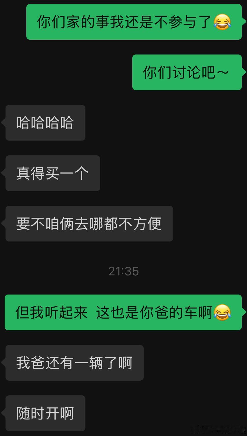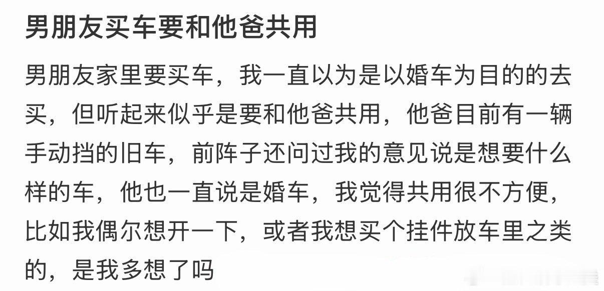 男朋友打算和他的父亲一起使用新买的车。