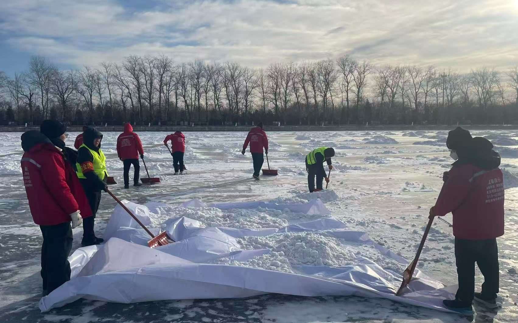 新京报讯(记者张璐)今天(1月20日)是大寒节气,北京气温再创今冬新低。在颐和园冰场,工作人员冒着严寒清雪,“在冰上走10分钟,人就冻透了,脸也冻僵了,嘴都张不开了。”颐和园经营科科长高悦表示,目前冰场已恢复开放,冰场上的积雪清理超过六成。