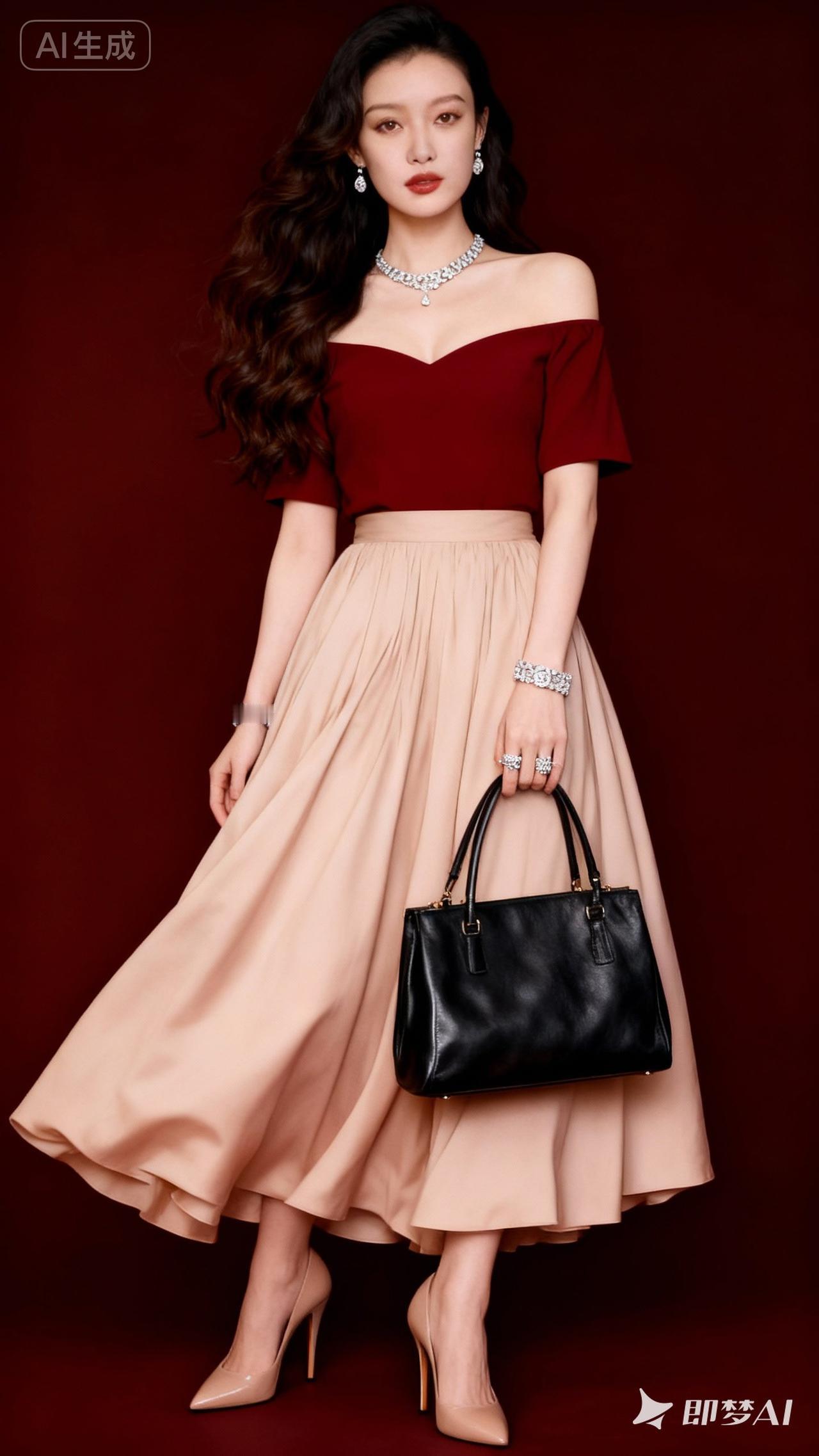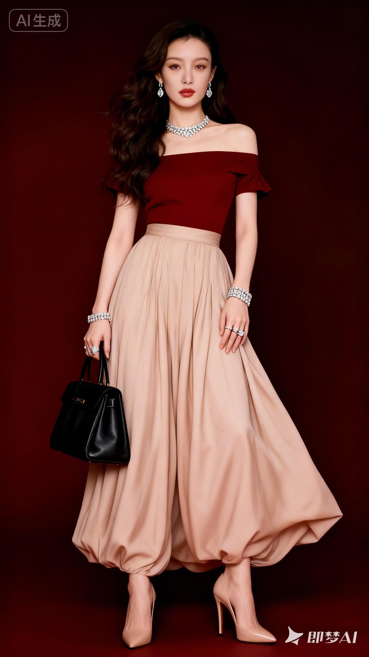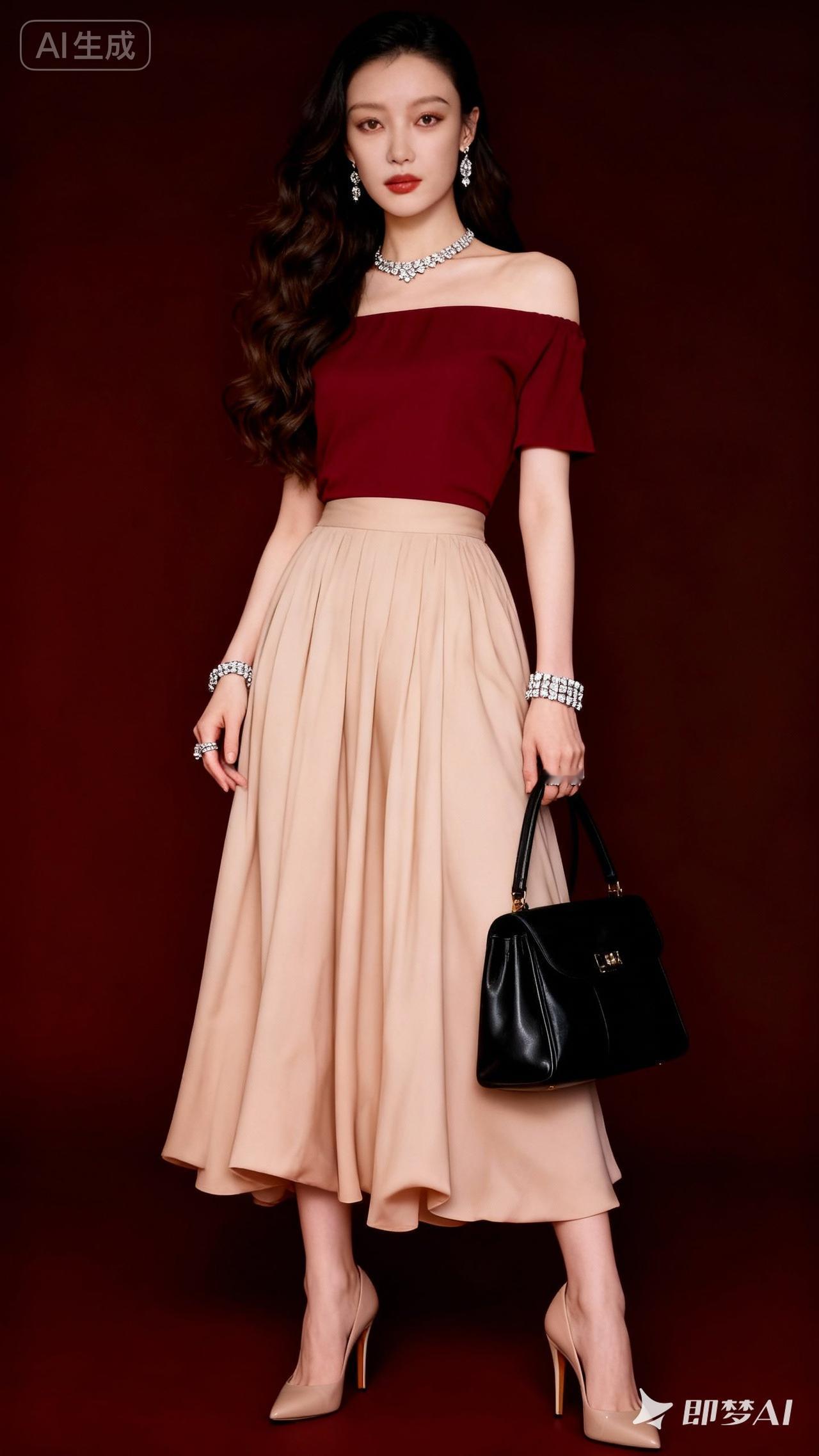 优雅红裙搭配米色长裙,尽显时尚魅力!
