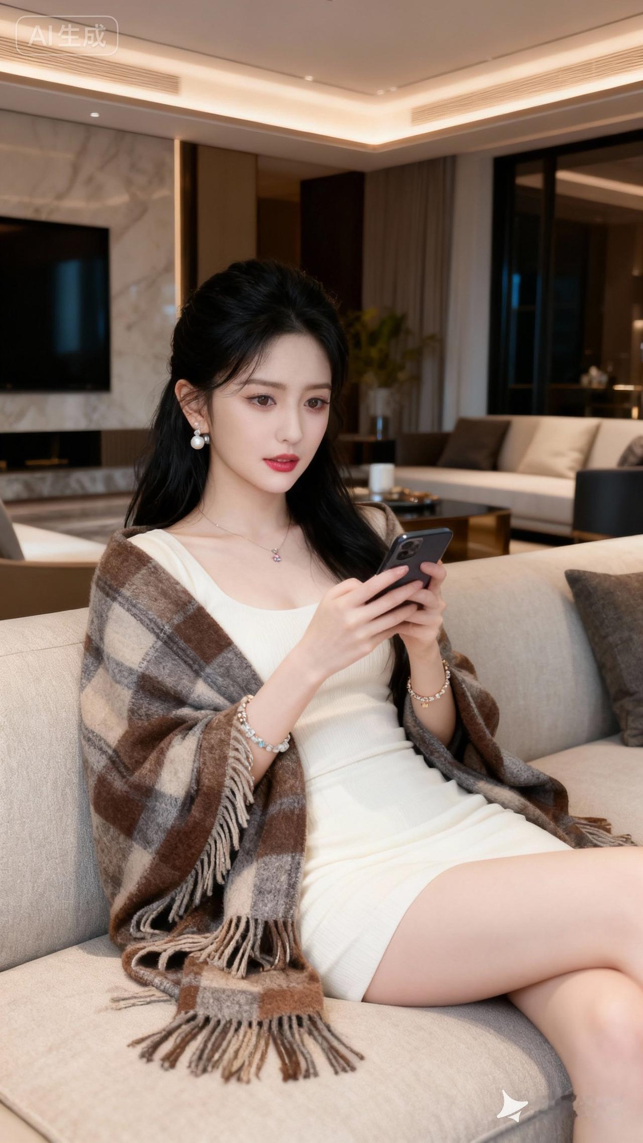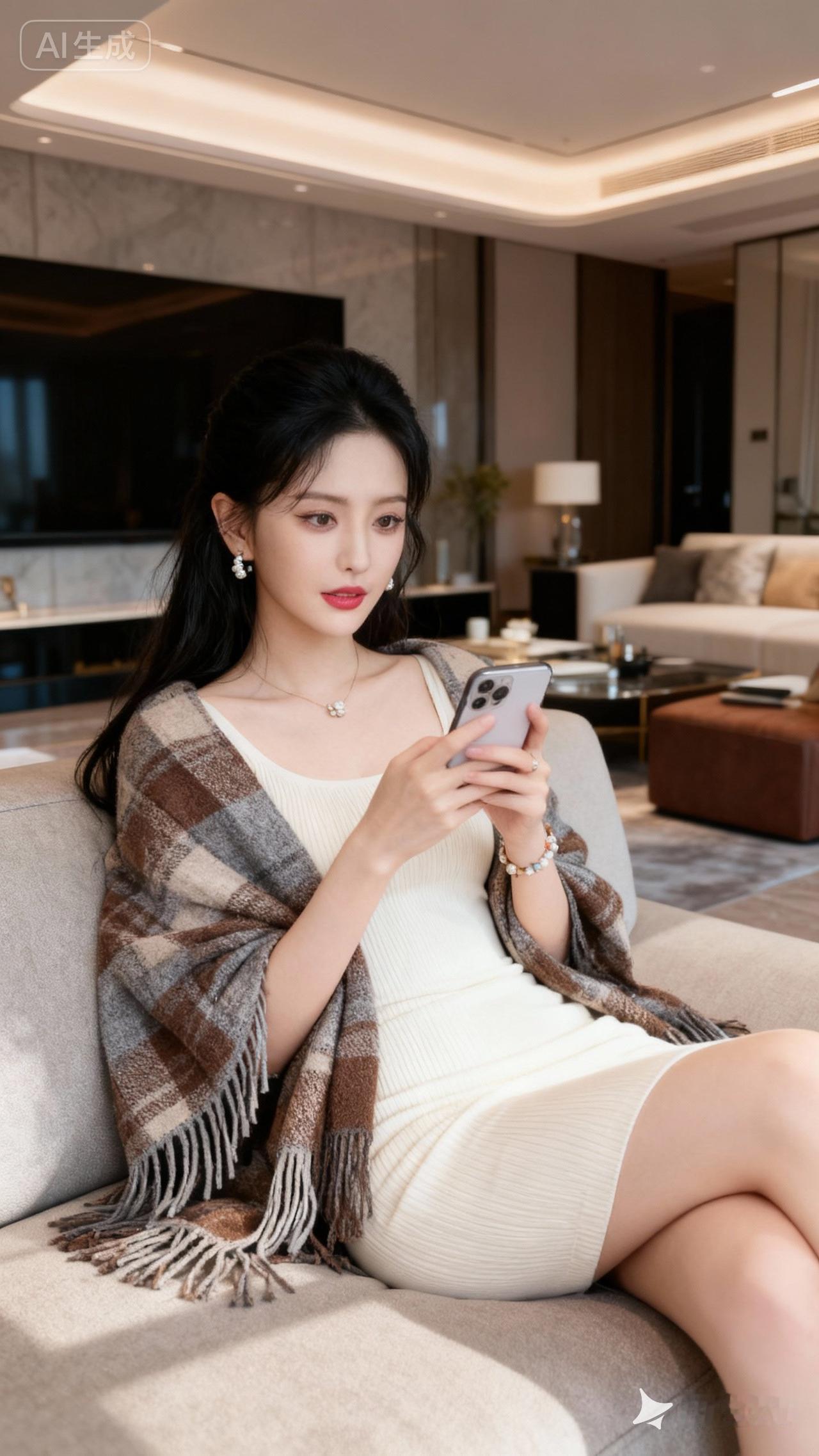 优雅客厅,时尚穿搭,手机自拍,精致生活