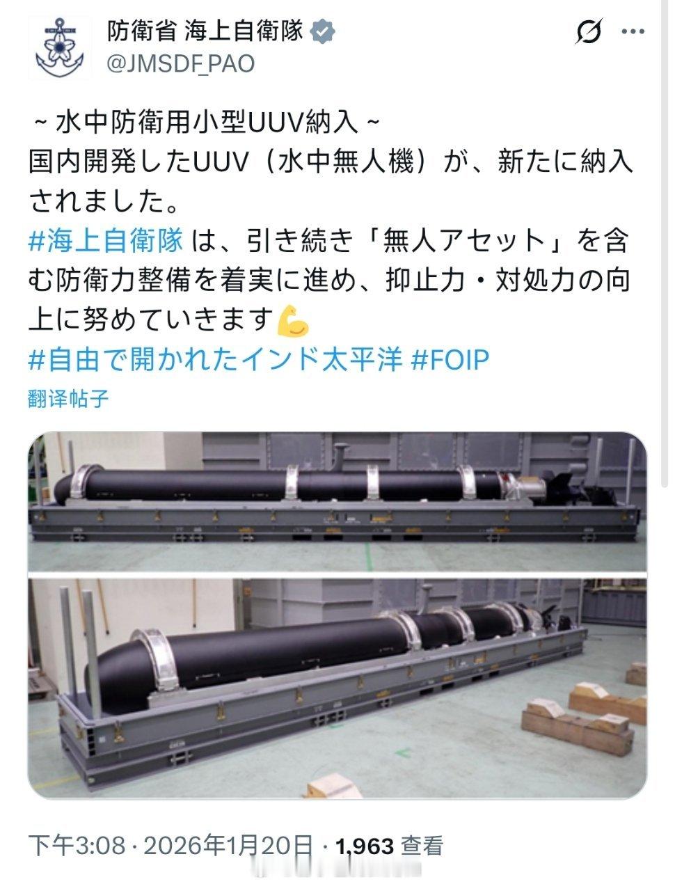日本海上自卫队今天接收了“水中防衛用小型UUV”推测是一种用于布雷的无人潜航器与东大在九三阅兵上展示的AJX002“无人布雷系统”应属同种装备根据相关专利可知该型无人潜航器应具备替换模块化载荷的能力并可通过“最上”级护卫舰或“樱”级哨戒舰的舰尾坞舱投放中外舰闻每天认识一件兵器烽火问鼎计划