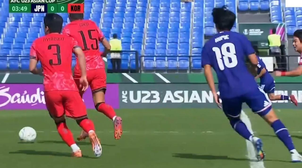 日本队进球啦!35分钟,日本队角球发后点,日本队员高高跃起头球攻门,门将扑到球没扑远,门口日本队员捡漏补射破门,日本U23队1比0暂时领先韩国∪23,日本队整体水平是技高一筹。 今天的半决赛谁胜谁进U23亚洲杯决赛,上半场日本队控球率占优,日本球员脚下技术比韩国队员好,日本已经创造了6次射门进1球,角球都已经5次了,韩国队有1次射门,韩国队反击质量还是不错的,1次传中头球制造威胁,目前,韩国队被日本队围攻了,43分钟,角球差点又进了,上半场大概率就是1比0了,韩国队凶多吉少!希望中国队拿下越南和日本争亚洲杯冠军,中国队加油!