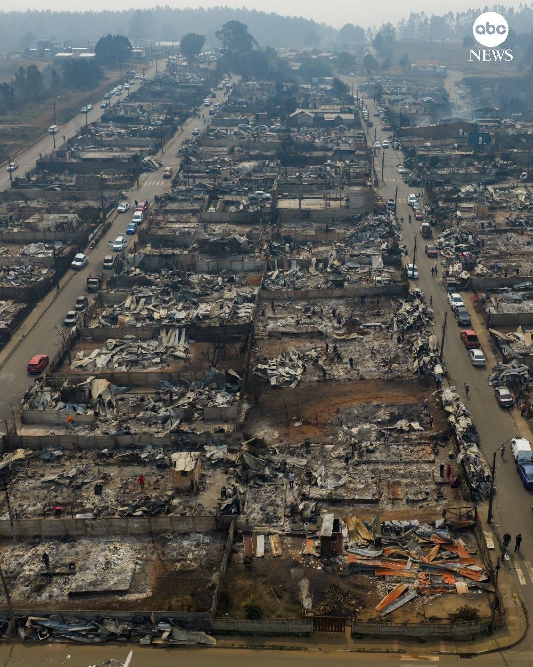 智利森林大火肆虐,已造成至少 19 人死亡,1500 人无家可归,消防员正在奋力扑救。 智利总统加布里埃尔·博里克表示,火灾已烧毁至少7万英亩土地,5万人被迫撤离。