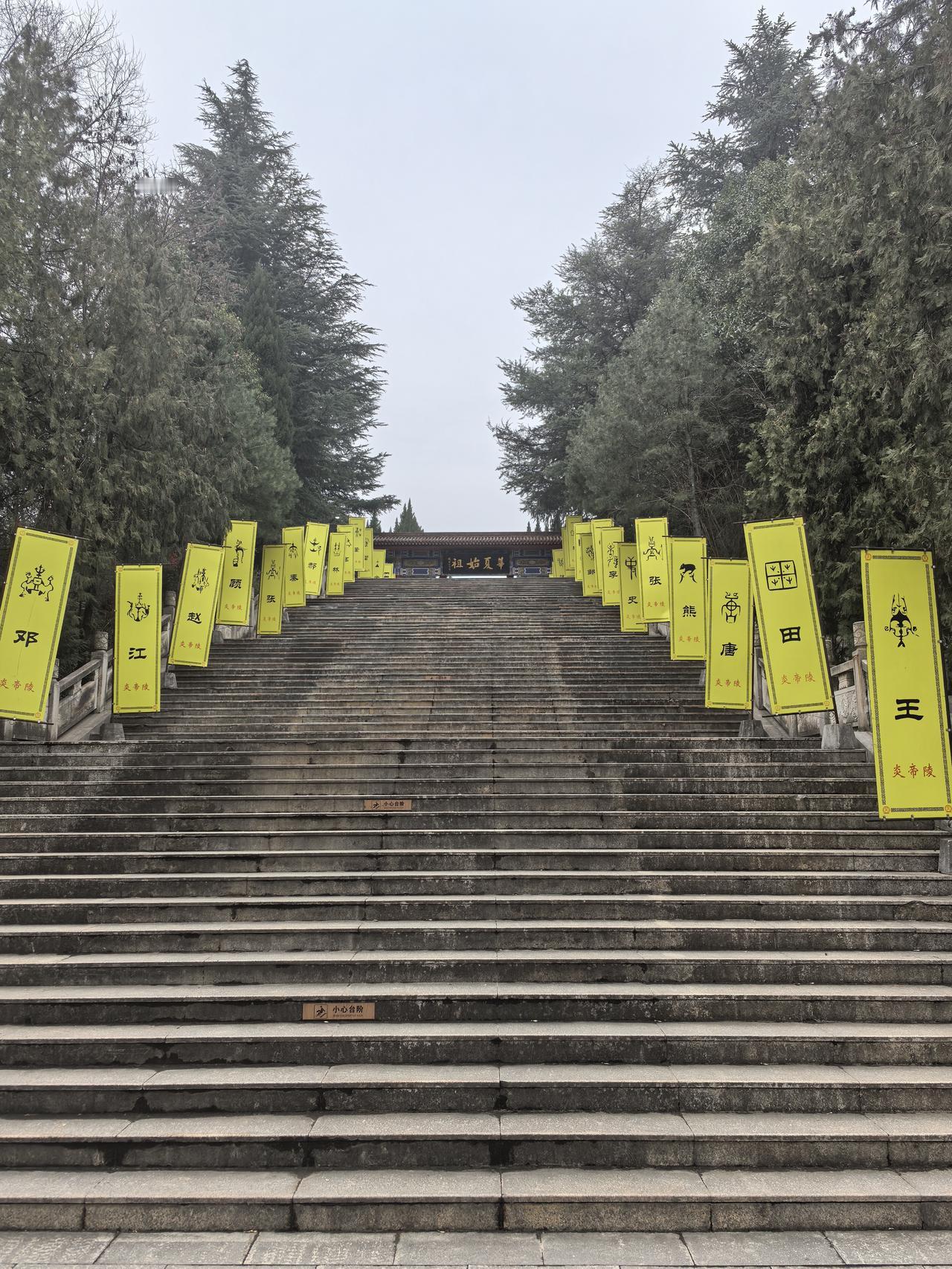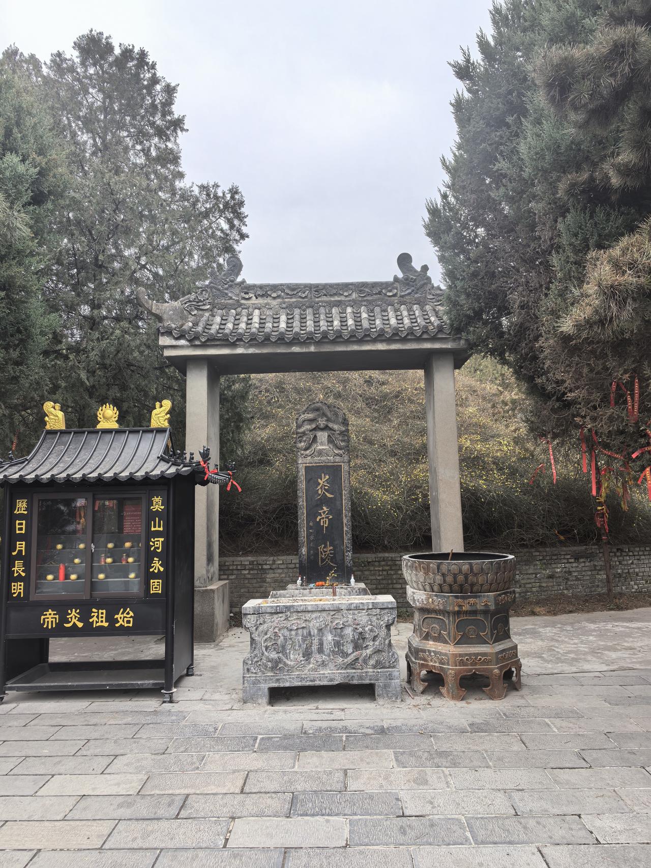 知道宝鸡有个炎帝陵,一直心心念念想去看看,最近正好到宝鸡有点事,趁着这次机会,终于完成了对炎帝陵的探访。 不过还是那句看景不如听景,这个炎帝陵现在的建筑应该都是新修的,后面的大冢应该已经存在上千年了,炎帝陵现存古迹实在不多,看了看院子里的石碑,基本都是现代镌刻。 不过整个炎帝陵的布局很有气势,建筑承中轴线对称,依次分布各个大殿,在大殿后面,是炎帝巨像,还有一处小型宫殿建筑,里面供奉炎帝神位,宫殿顶部是藻井。 宫殿之后就是一段沿山而上的台阶,直通帝冢,台阶两侧是历代帝王的塑像。历代帝王两边站岗,也只有炎帝才能配享如此规格。