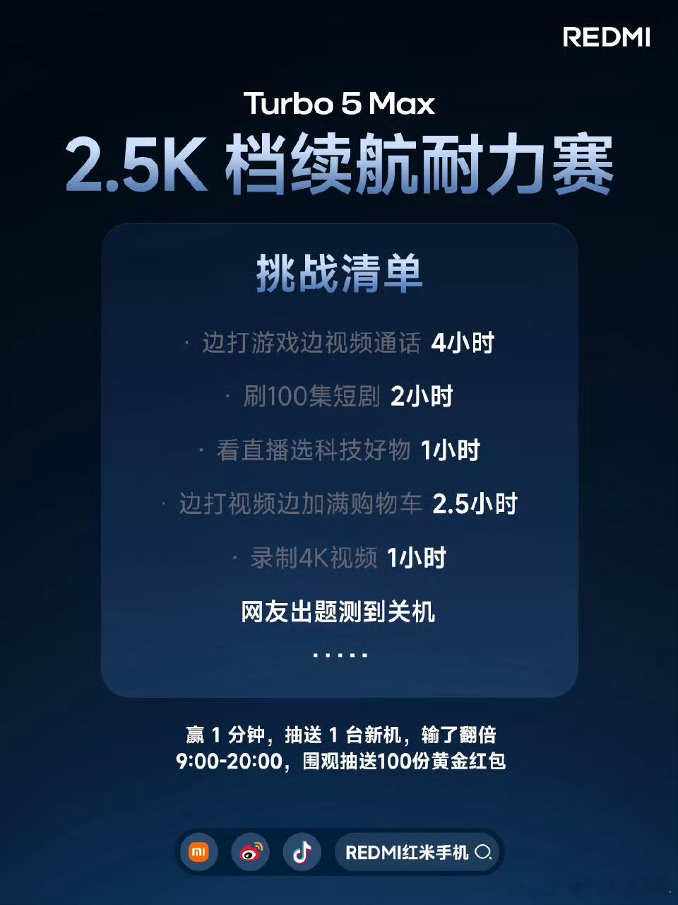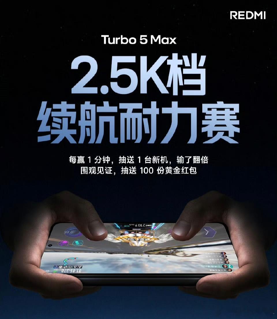 今天2.5K续航耐力赛大家都看了嘛?REDMI Turbo5 Max的续航是真能打啊!直接带着9000mAh金沙江大电池正面刚同档位机型。边打游戏边通话+刷短剧+边购物边视频通话等等…连续重载使用近9小时,Turbo 5 Max依然剩余31%!更良心是这次还推出了Turbo5Max五年电池保,光是换电池钱都能省下一大笔了!再加上100W快充回血速度超快,主打的就是一个超超超长续航。耐力赛的硬核实测+五年质保的安心保障,续航安全直接拉满。充电宝?真的可以扔一边啦~