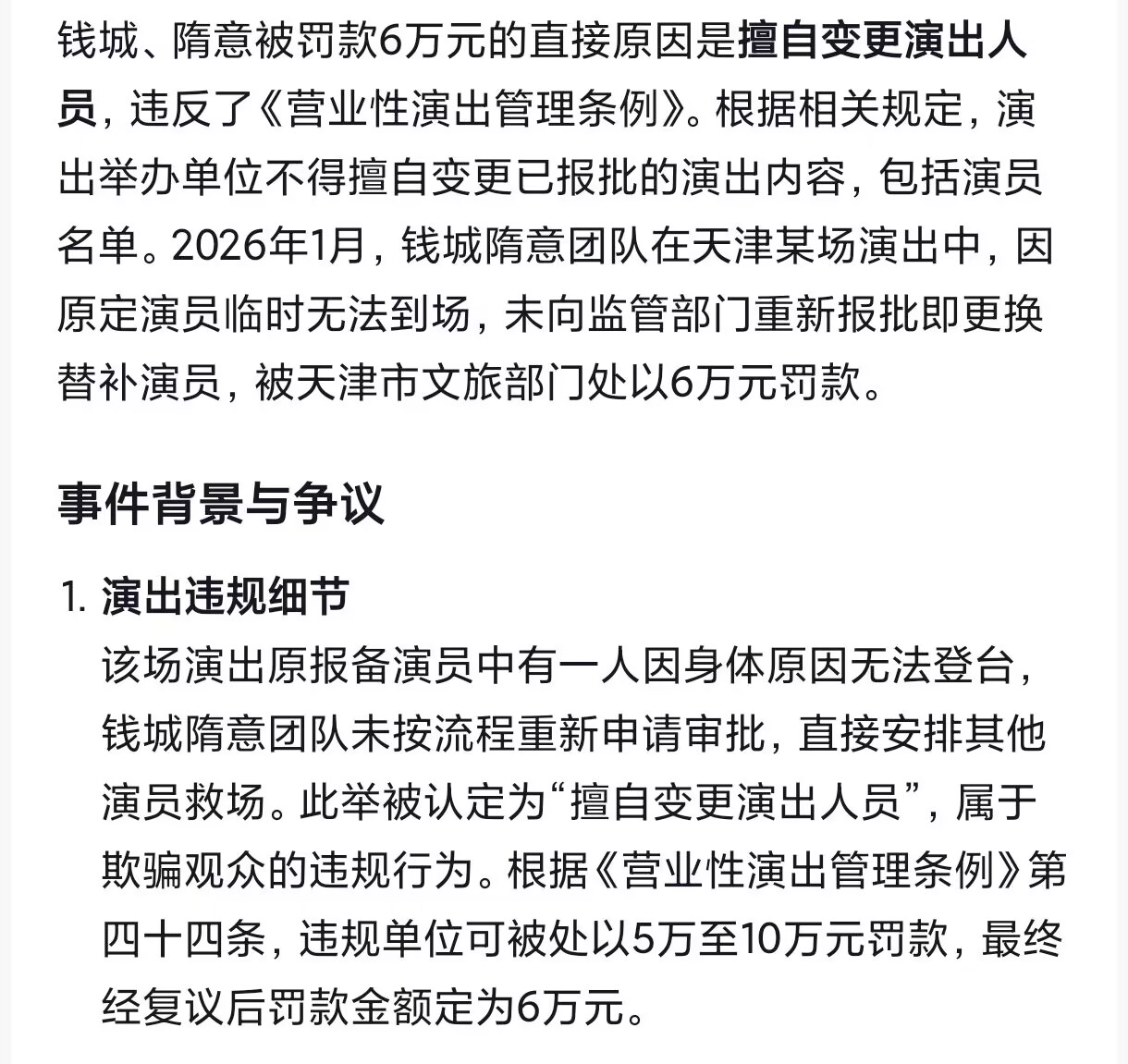 随便更换演员就该罚,这个时候了还拿老郭当年返场的事说事,说他也违规了,真敢说,老郭创纪录的25次的返场是他和于谦不停的返,属于小段返场而且并没换演员,当然没事了。这俩倒霉模样天天忙着给别人开窍,忘了给自己开了