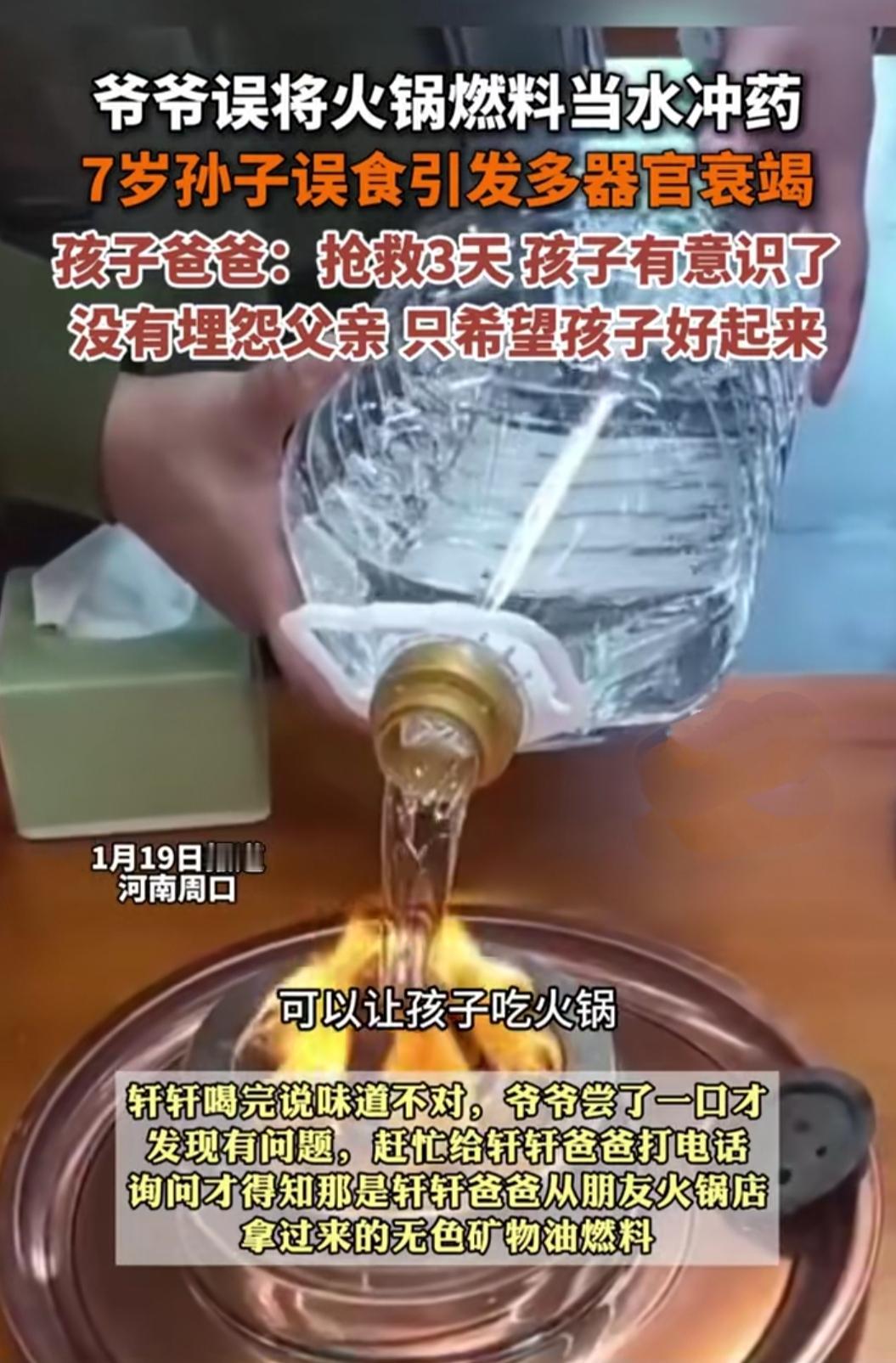 谁能想到,爷爷满怀疼爱的一次喂食,竟成了孩子的噩梦。误将燃料当作清水喂给孙子,短